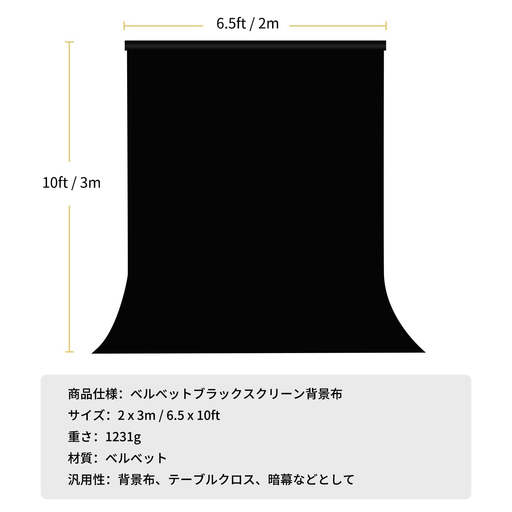 Meking 背景布 黒 2m X 3m 暗幕 無反射 不透明 バックスクリーン ベルベット材質 背景シート 撮影背景 ブースブラック スタンド スタジオ撮影 写真 ビデオなどに対応
