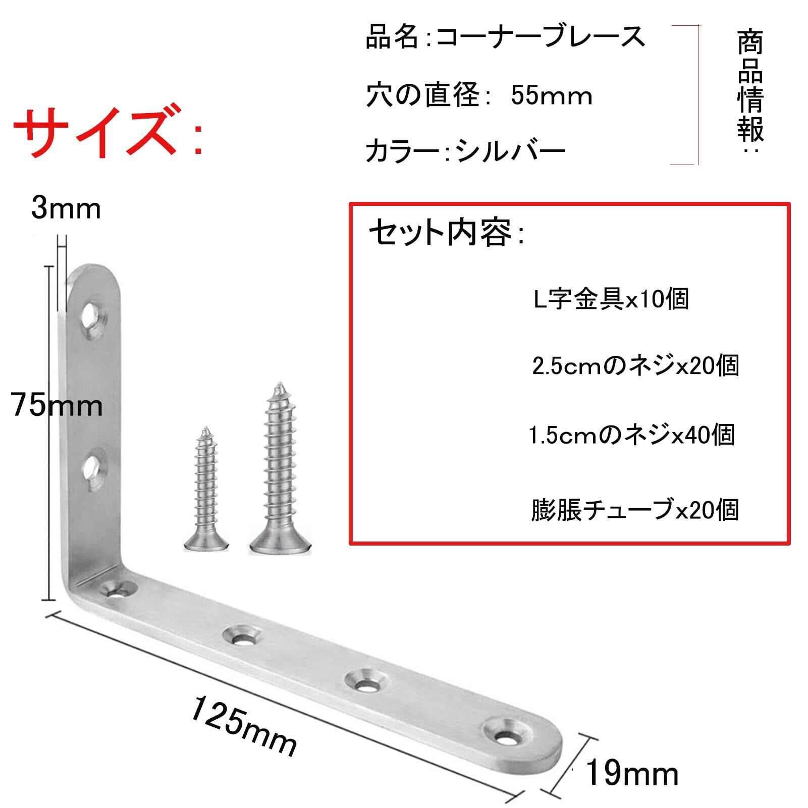 IUME l字金具 ステンレス製アングル 10個セット l字アングルブラケット アングル 金具 補強 コーナーブレース ブラケット金具 75×125×20mm ブランド IUME 商品寸法 (長さx幅x高さ) 7.5 x 12.5 x 2 cm ユニット数 1.00 個 商品の奥行き 20 centimeters IUME