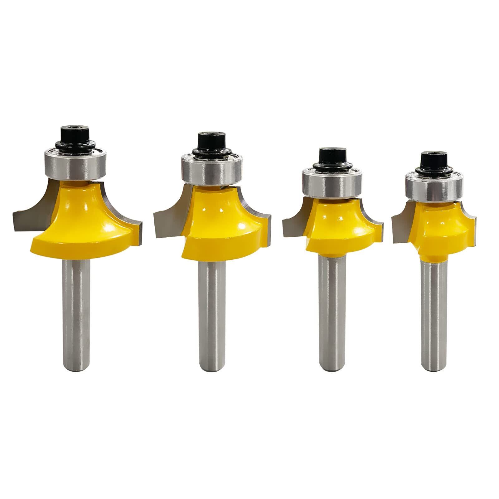 CSOOM ギンナン面ビット 丸面ビット 4本セット、6mmシャンク、超硬トリマー、ルータービット、コーナーラウンド、電動トリマービット、DIY木工用のベアリング付き