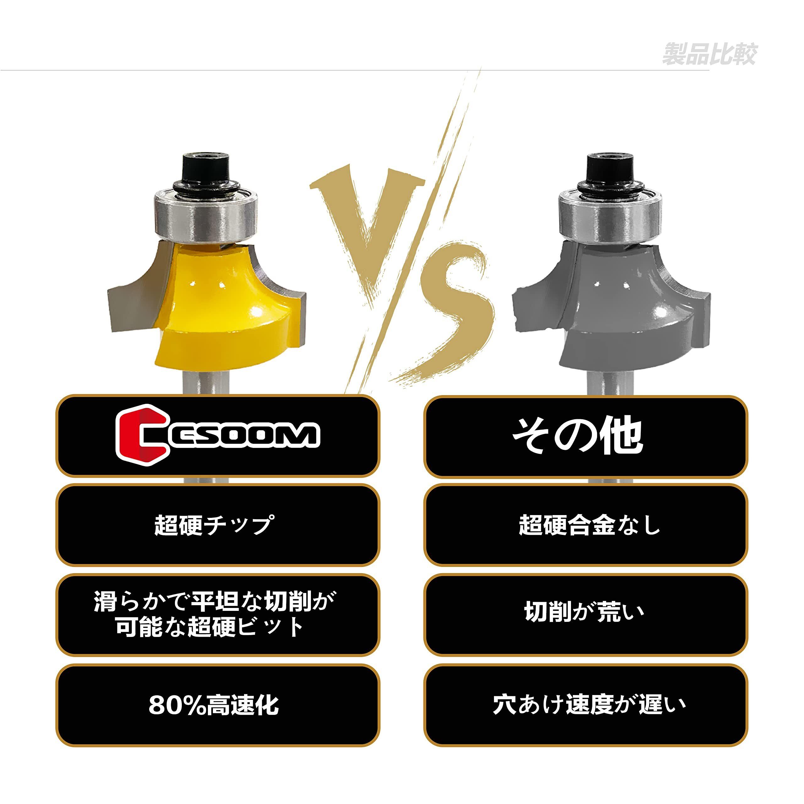 【新着特価】CSOOM ギンナン面ビット 丸面ビット 4本セット、6mmシャンク、超硬トリマー、ルータービット、コーナーラウンド、電動トリマービット、DIY木工用のベアリング付き
