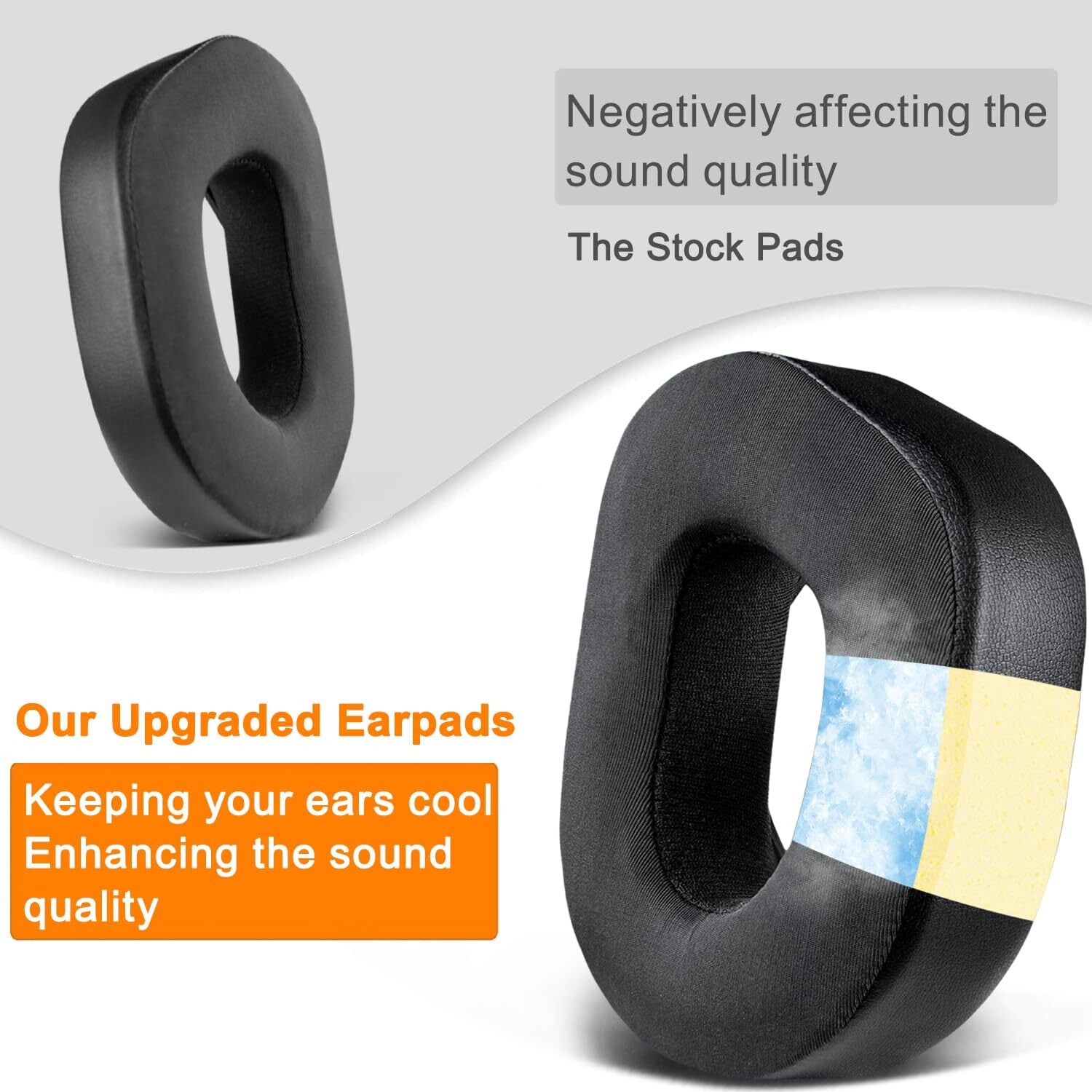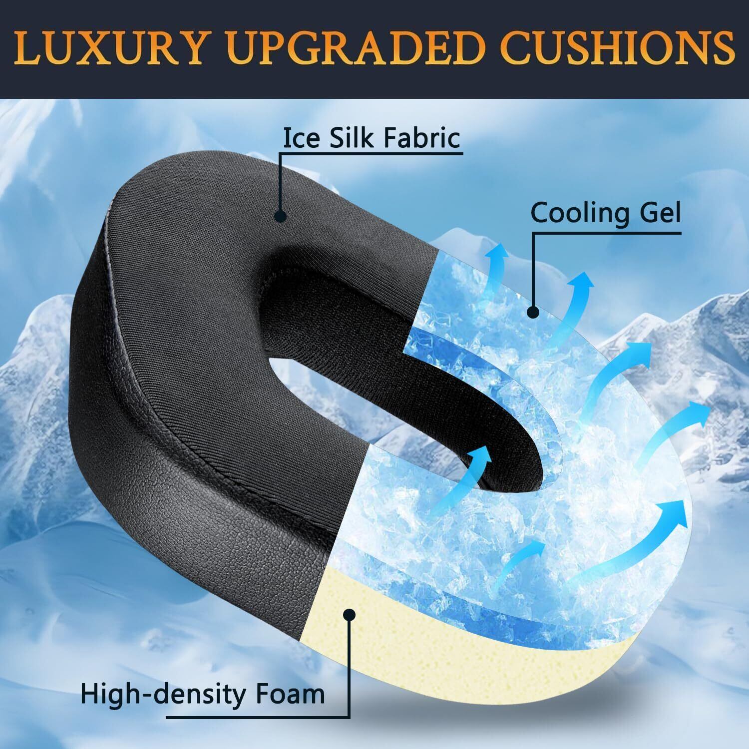 【冷却ジェル】ヘッドパッドの表面は通気性良いのアイスシルク生地を採用されて、その下の層に冷却ジェルが入ります。汗を吸収する素材なので、長時間の間に使用しても蒸れにくいです。また、高密度フォームを採用して耳触りがよく柔らかくてフィット感もよくて快適に使用できます。長時間使用時に耳への負担も軽減できます。快適さと見映えを両立させます。