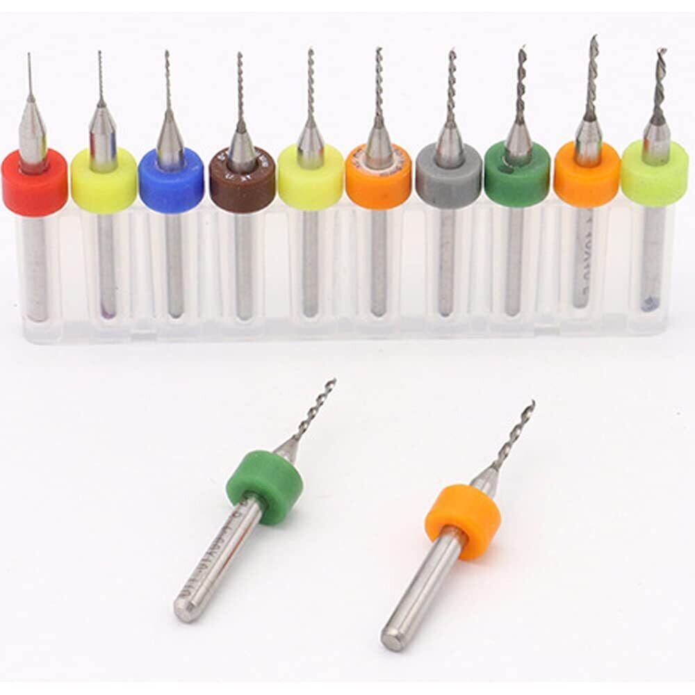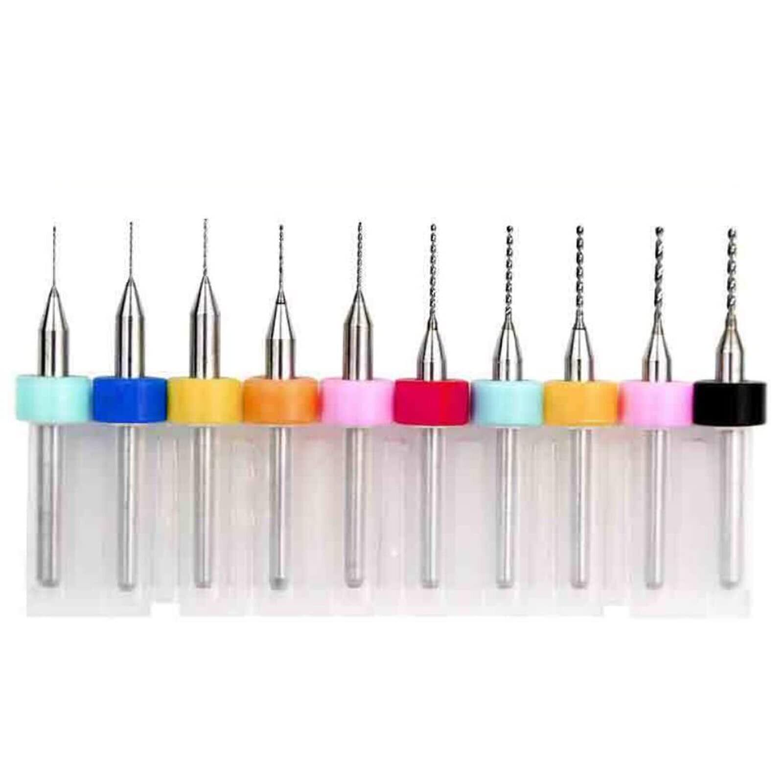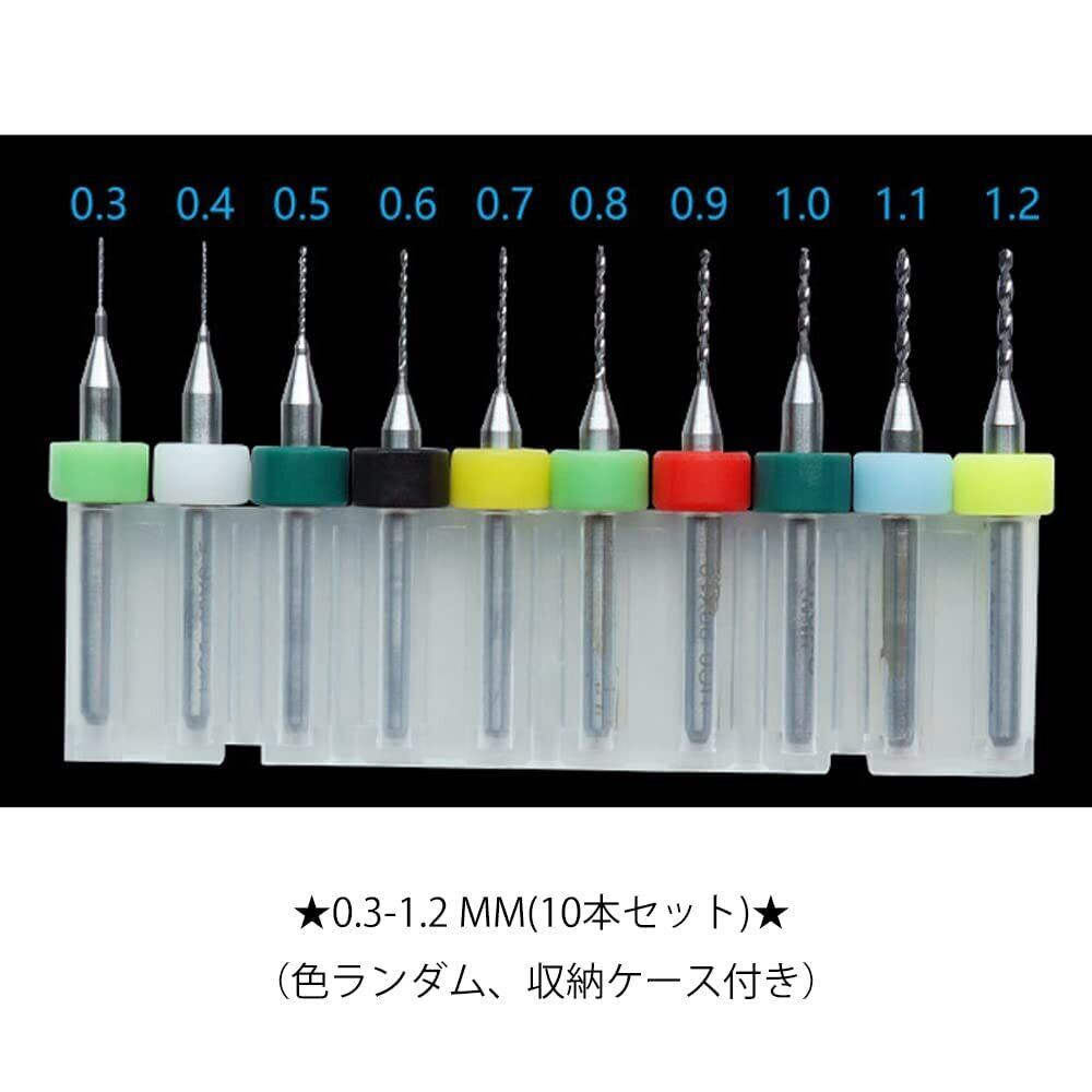 セット内容:極細ドリルビット10本セット(収納ボックス付き)、サイズ:0.3-1.2mm(0.3、0.4、0.5、0.6、0.7、0.8、0.9、1.0、1.1、1.2mm)、カラー:カラフル(色ランダム)。