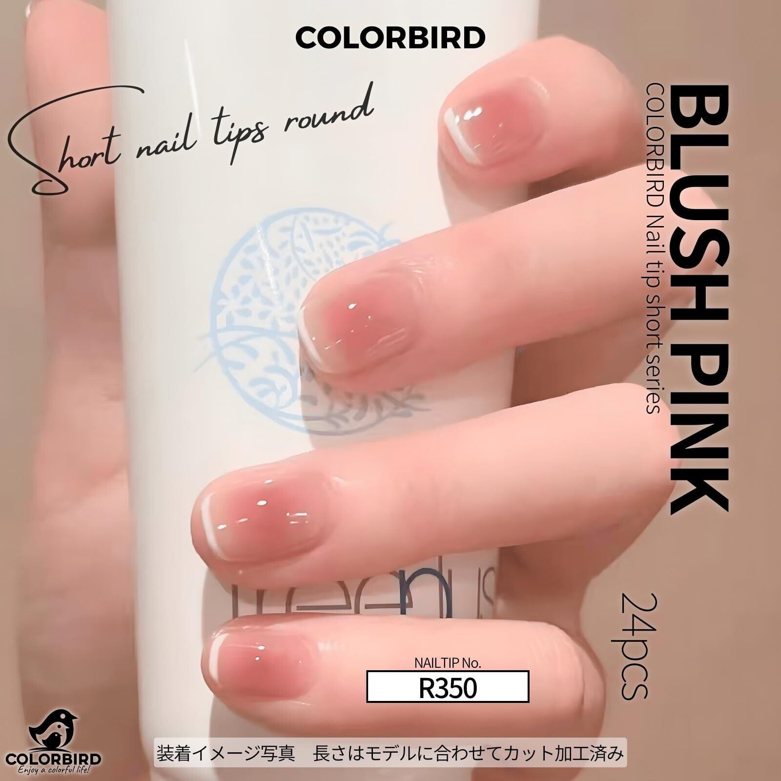 COLORBIRD ネイルチップ ショート 24枚 ピンク ネイル 付け爪 チップ 短め 可愛い フレンチ スクエアオフ (R350)
