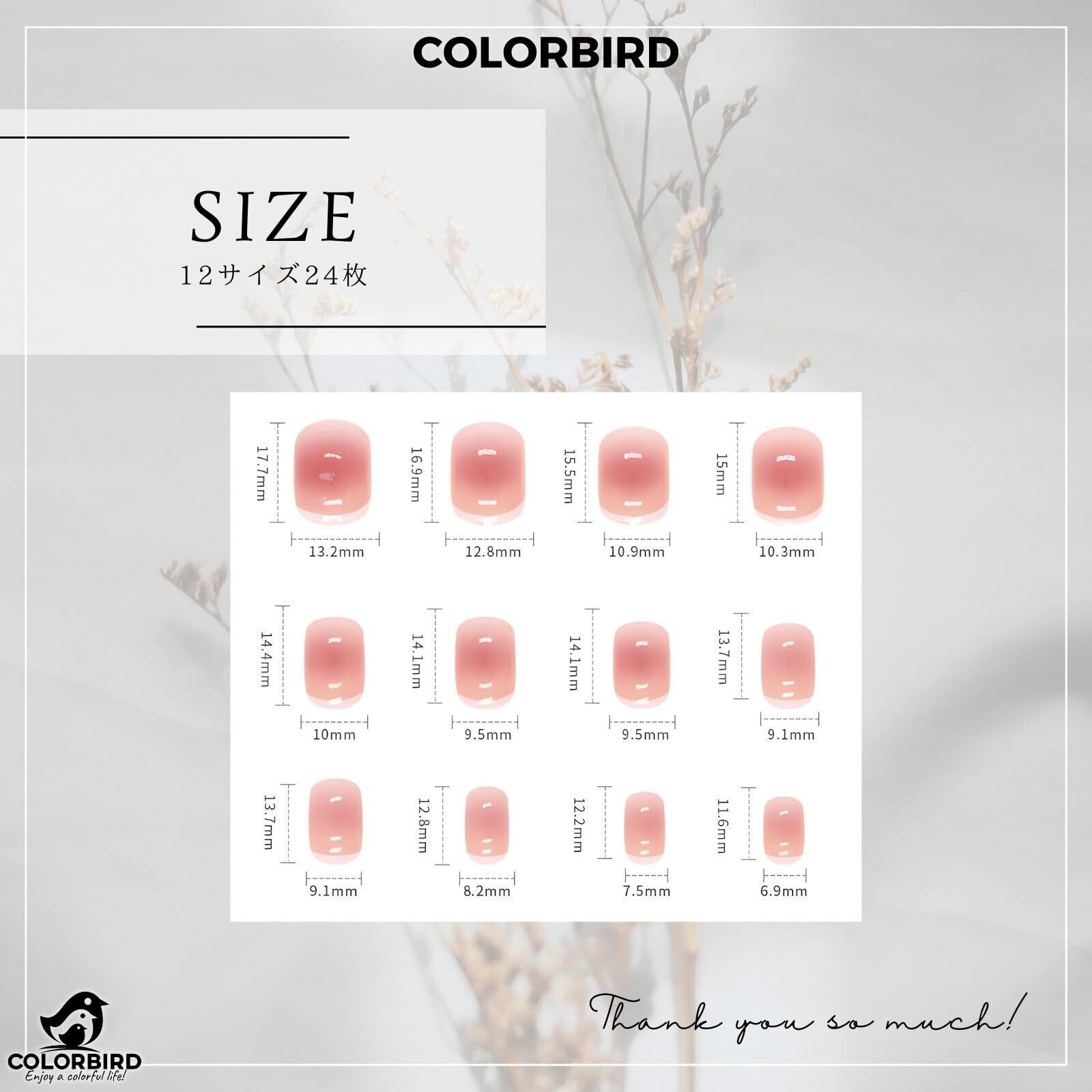【在庫処分】COLORBIRD ネイルチップ ショート 24枚 ピンク ネイル 付け爪 チップ 短め 可愛い フレンチ スクエアオフ (R350)