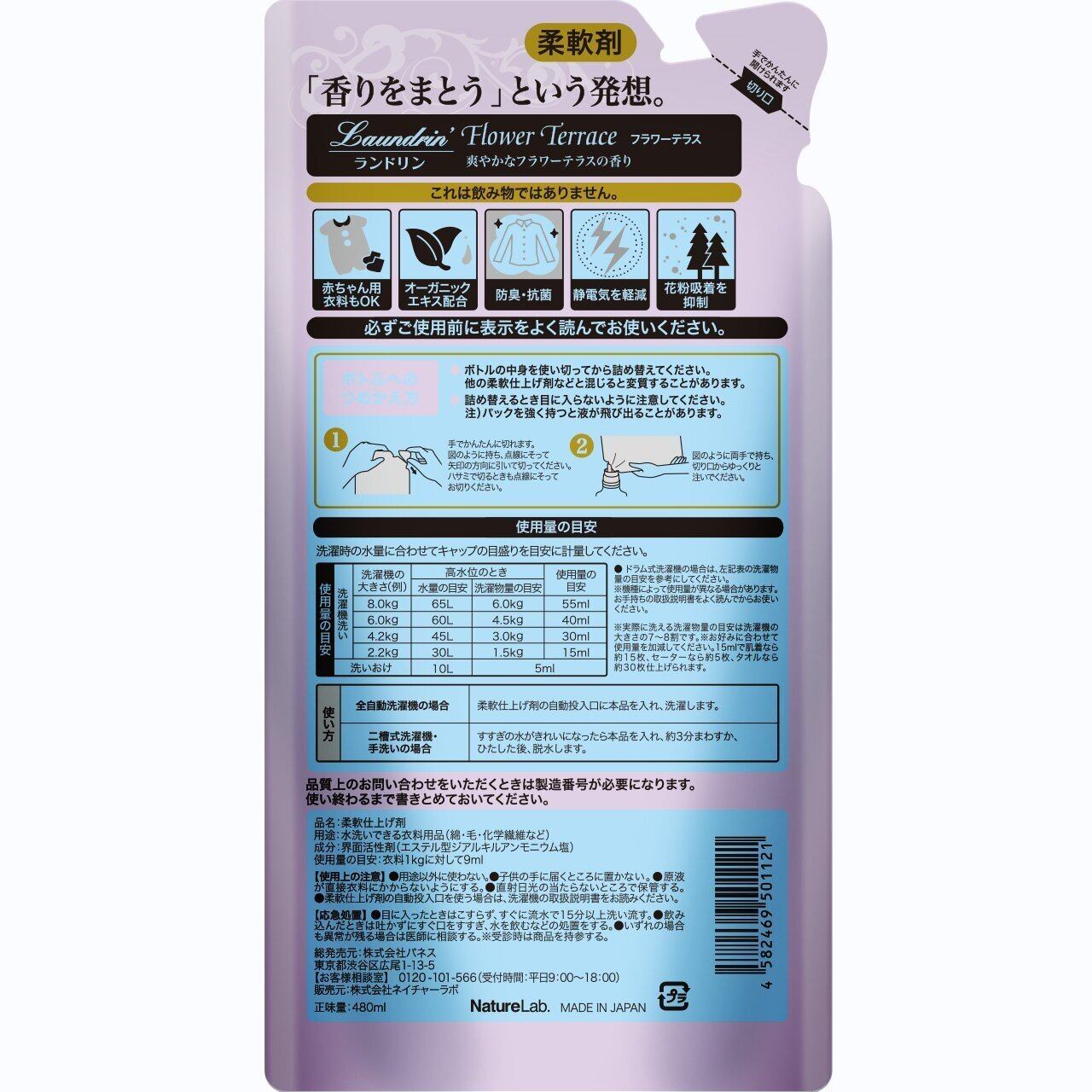 【特価処分】ランドリン (Laundrin) 柔軟剤 詰替え フラワーテラス 2個