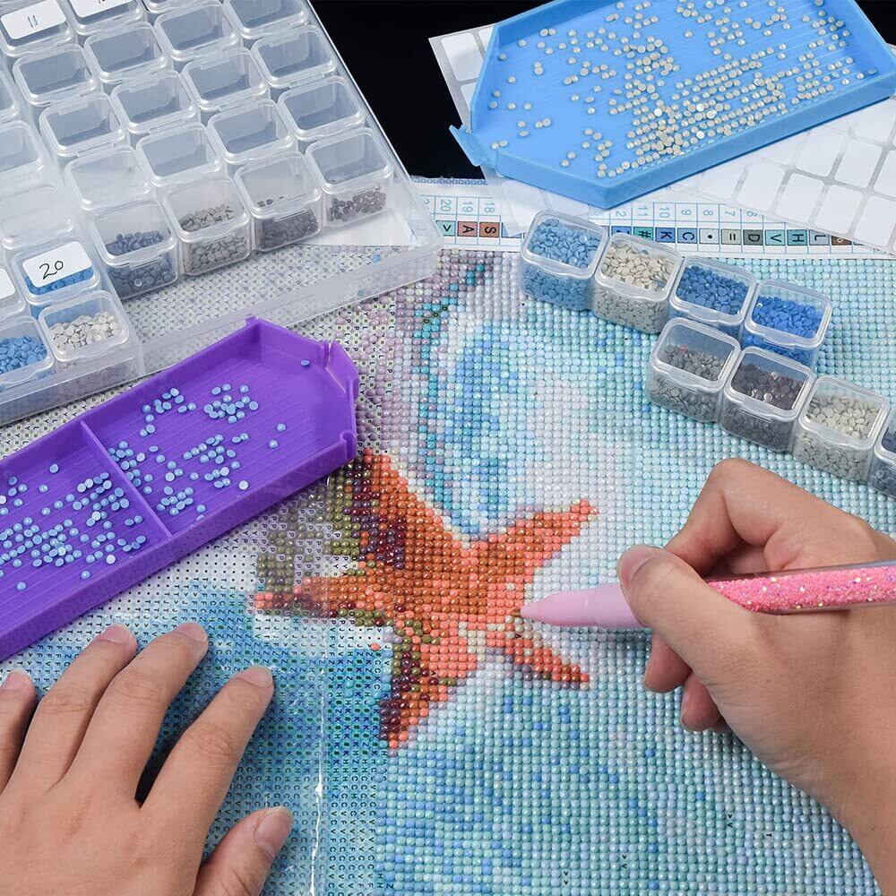 【優れたデザイン】 ダイヤモンドペインティングボックスには、さまざまな小物を収納できる56のミニコンパートメントグリッドがあります。そして、各グリッドは別々に開くことができ、小さなグリッドは大きな箱に詰められており、あなたの物を二重に密封することができます。