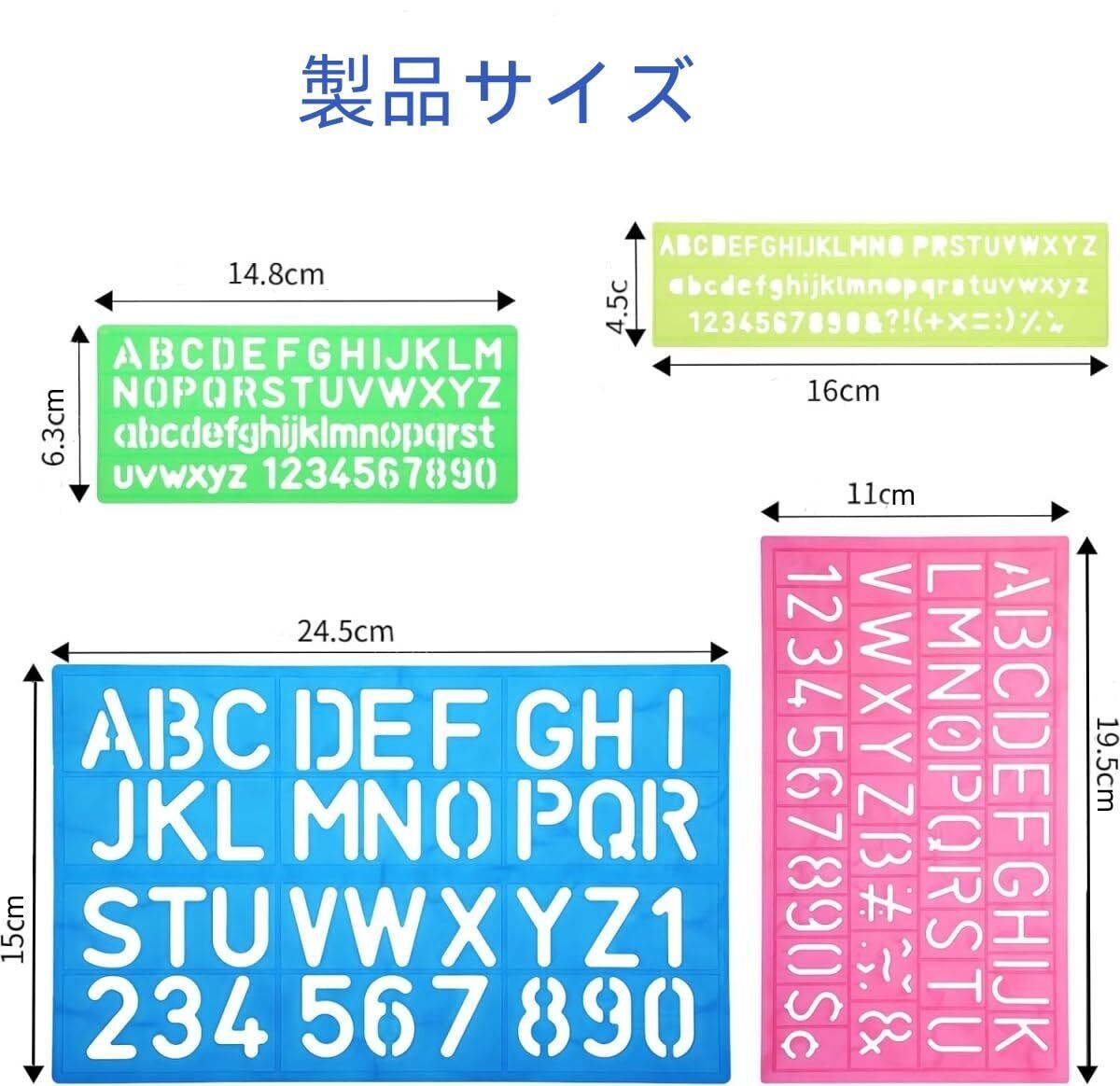 テンプレート 英数字レター 4枚セットDIY絵画塗装道具 大文字 アルファベット 数字 描画 テンプレート 製図用 定規ステンシルシート繰り返し利用