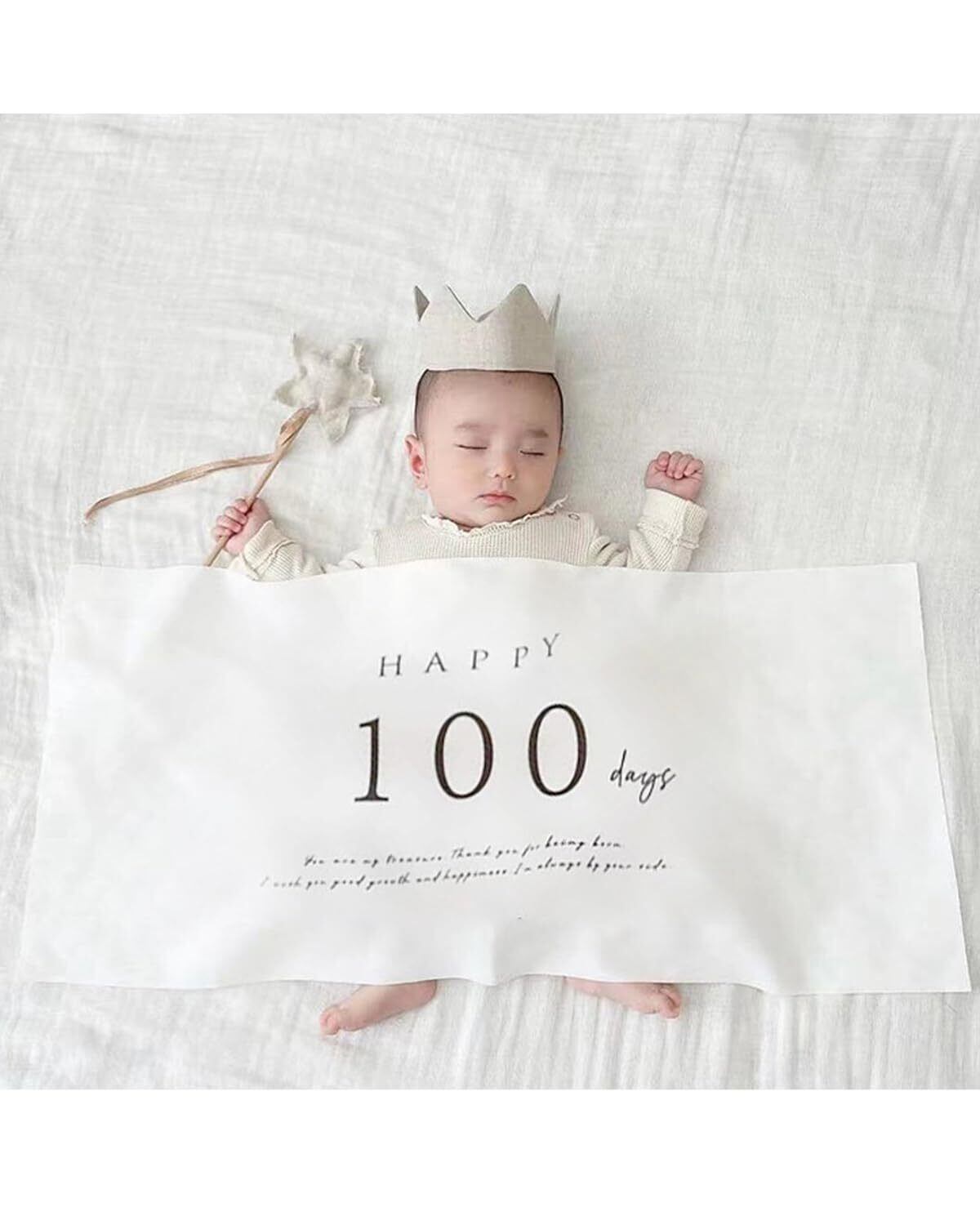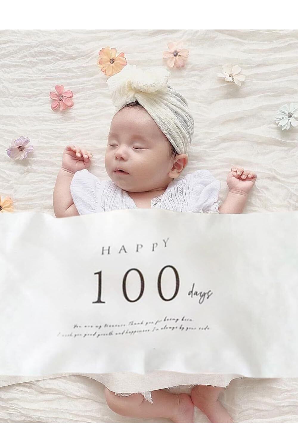 LIKENNY ハーフバースデー タペストリー happy birthday 壁掛け 100日祝い 100日タペストリー 飾り付け 誕生日 記念日用 ハンドメイド フック貼り付けツール付き(横版100日)