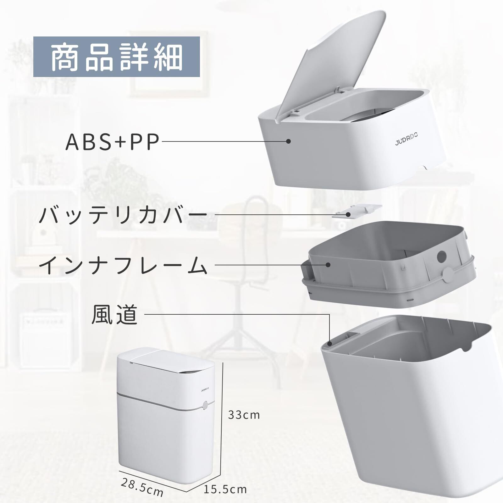 JUDRDO ゴミ箱 ふた付き 蓋付き 自動 開閉 ??桶スリム ける おしゃれ 袋締め センサーごみ箱 ゴミ袋が見えない キッチン ふた付きゴミ箱 小さい 隙間に置 電池式 10L 消臭 自動吸着 幅15.5cm×奥行28.5cm×高さ33cm 生活防水 省スペース リビング トイレ オフィス キッチン(ゴミ袋*20)