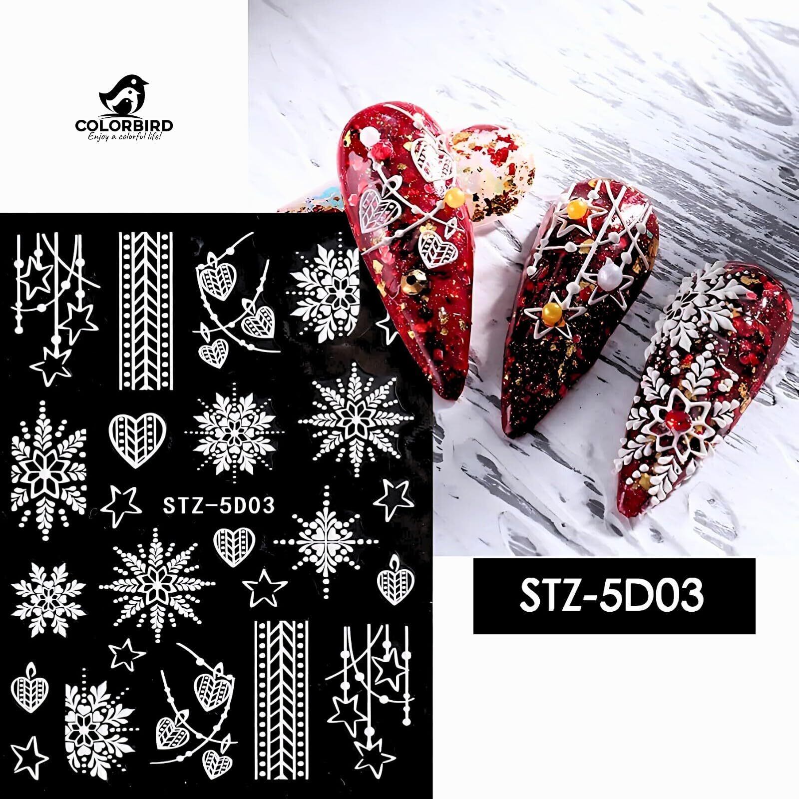 【新着特価】COLORBIRD ネイルシール クリスマス パーツ スノーフレーク 可愛い 雪の結晶 雪 立体 (STZ-5D01-3)