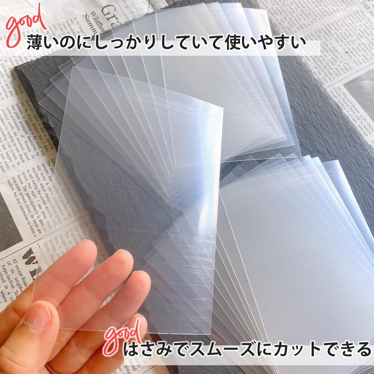 ?【商品について】シャカシャカやシール帳用のppシート20枚のセットです。色んな形に切ってお使い頂けます♪ UVレジン、エポキシ樹脂、樹脂粘土などにご利用いただけます。