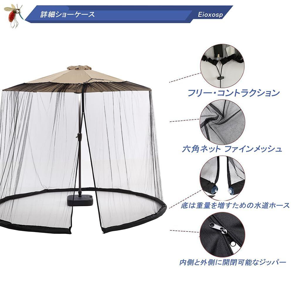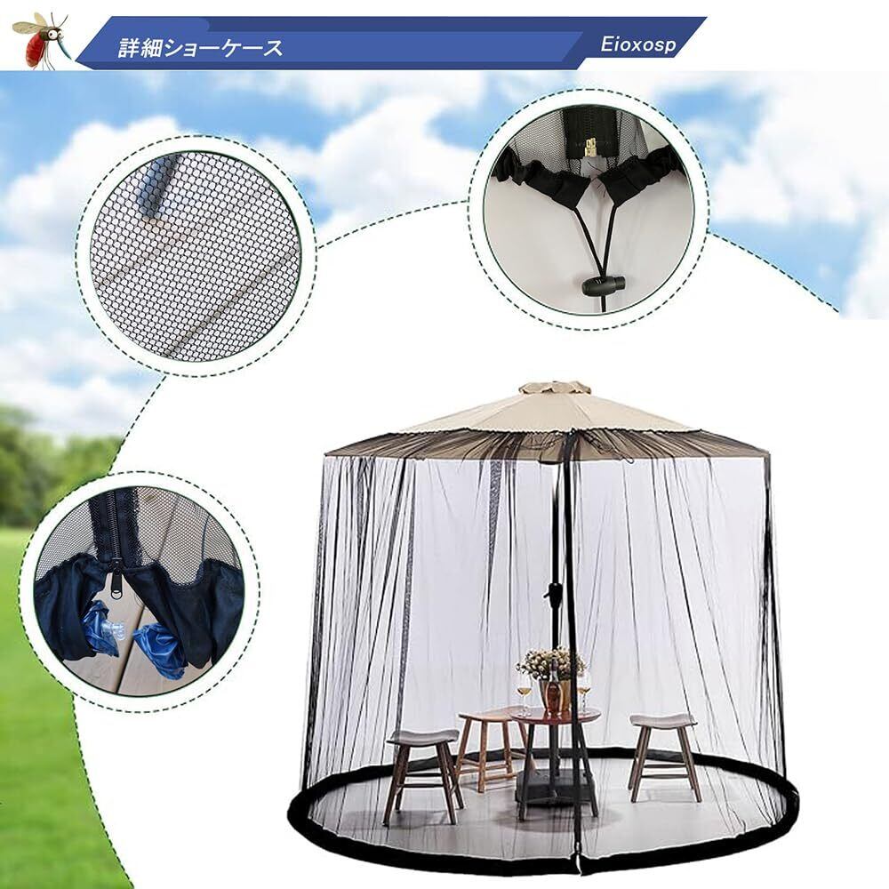 蚊帳 ガーデンパラソル用 大型 モスキートネット ガーデンか 防虫ネット 蚊よけ 虫よけ対策 メッシュ アウトドア キャンプ 取り付け簡単 携帯便利 風通し良い