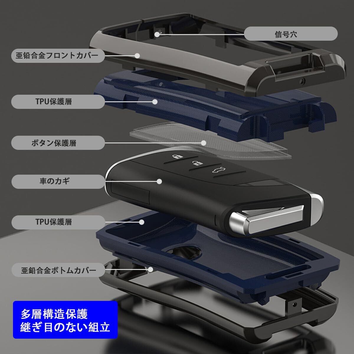 レクサス LEXUS キーケース LC LS UX ES 専用 組み立て式 亜鉛 金属製 スマート キーケース キーホルダー キーカバー (ブルー)