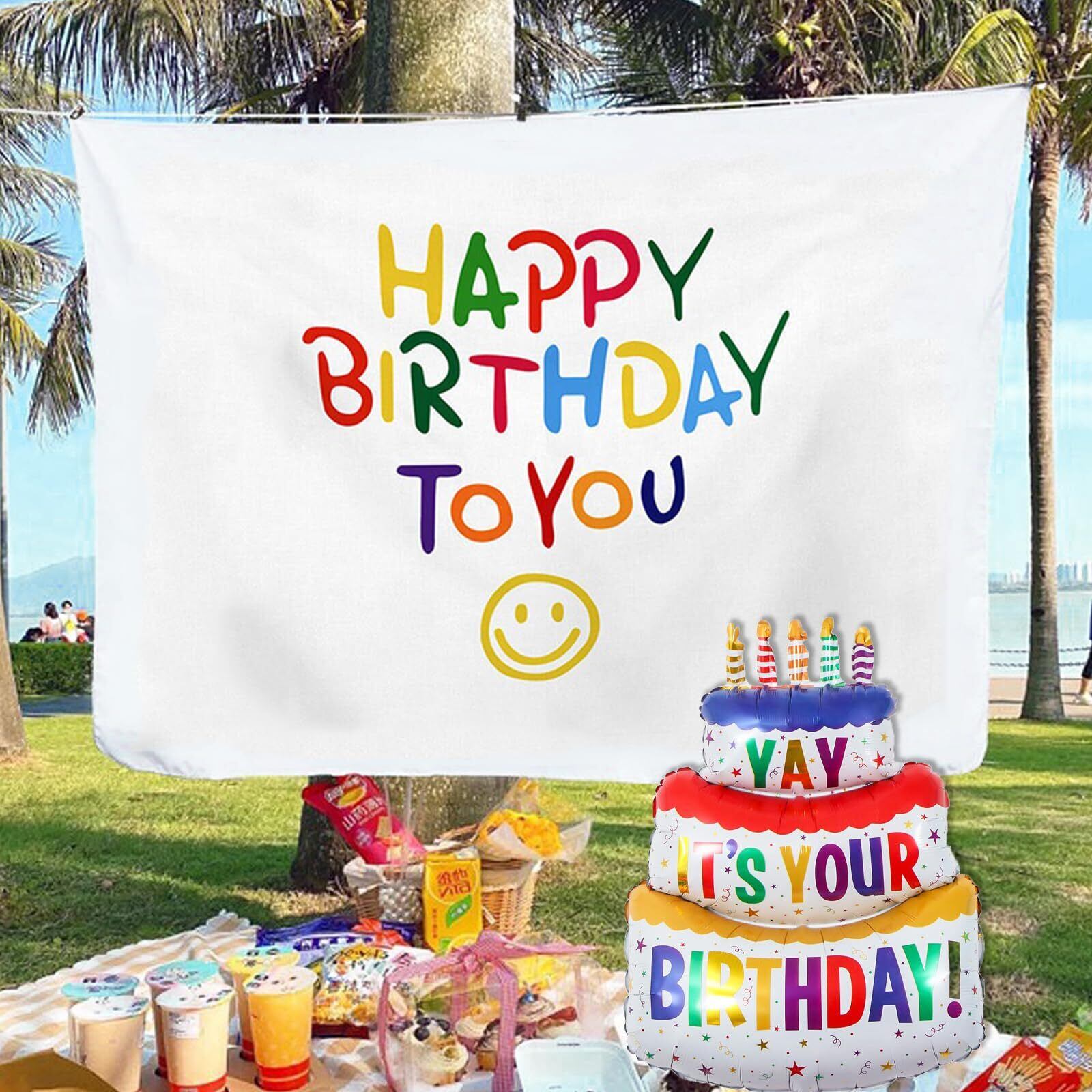 タペストリー 特大ケーキバルーン HAPPY BIRTHDAY 飾り付け 男の子 女の子 おしゃれ カラフル 可愛い プレゼント 飾り付け パーティー 写真背景 インストールツール付き