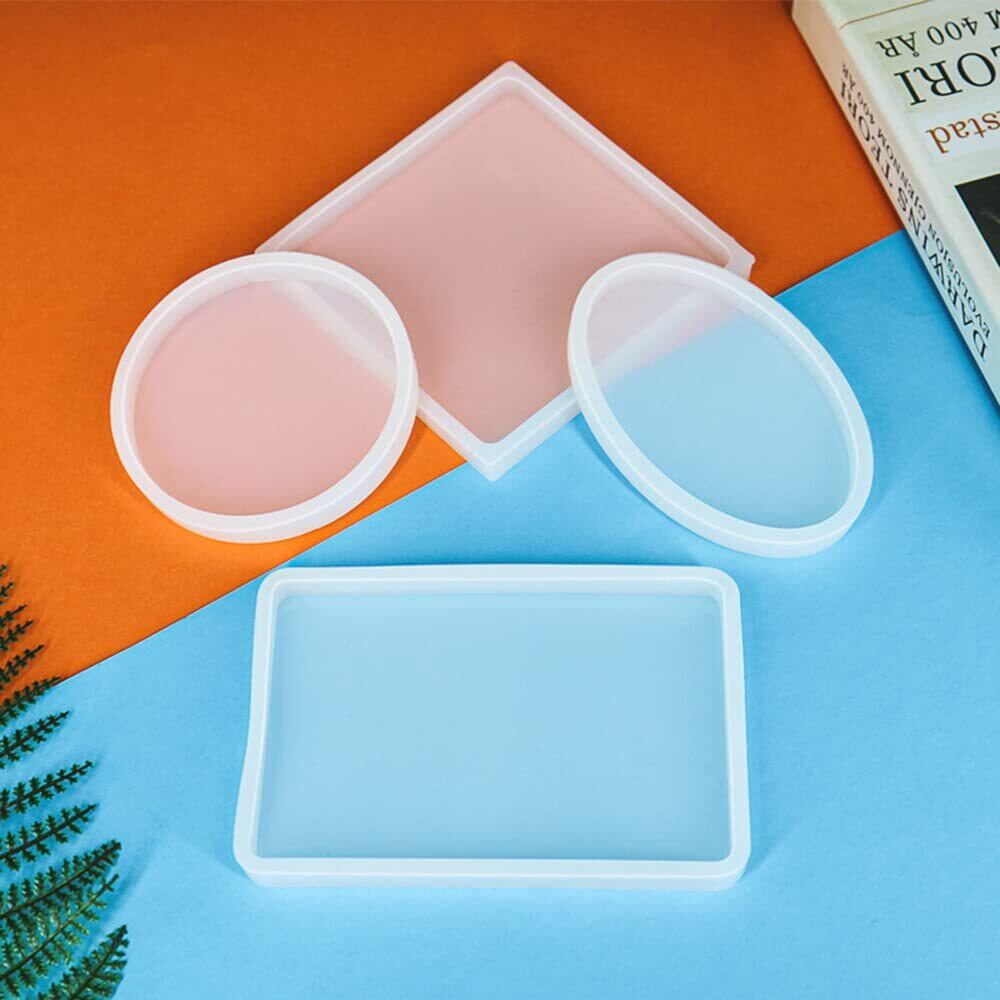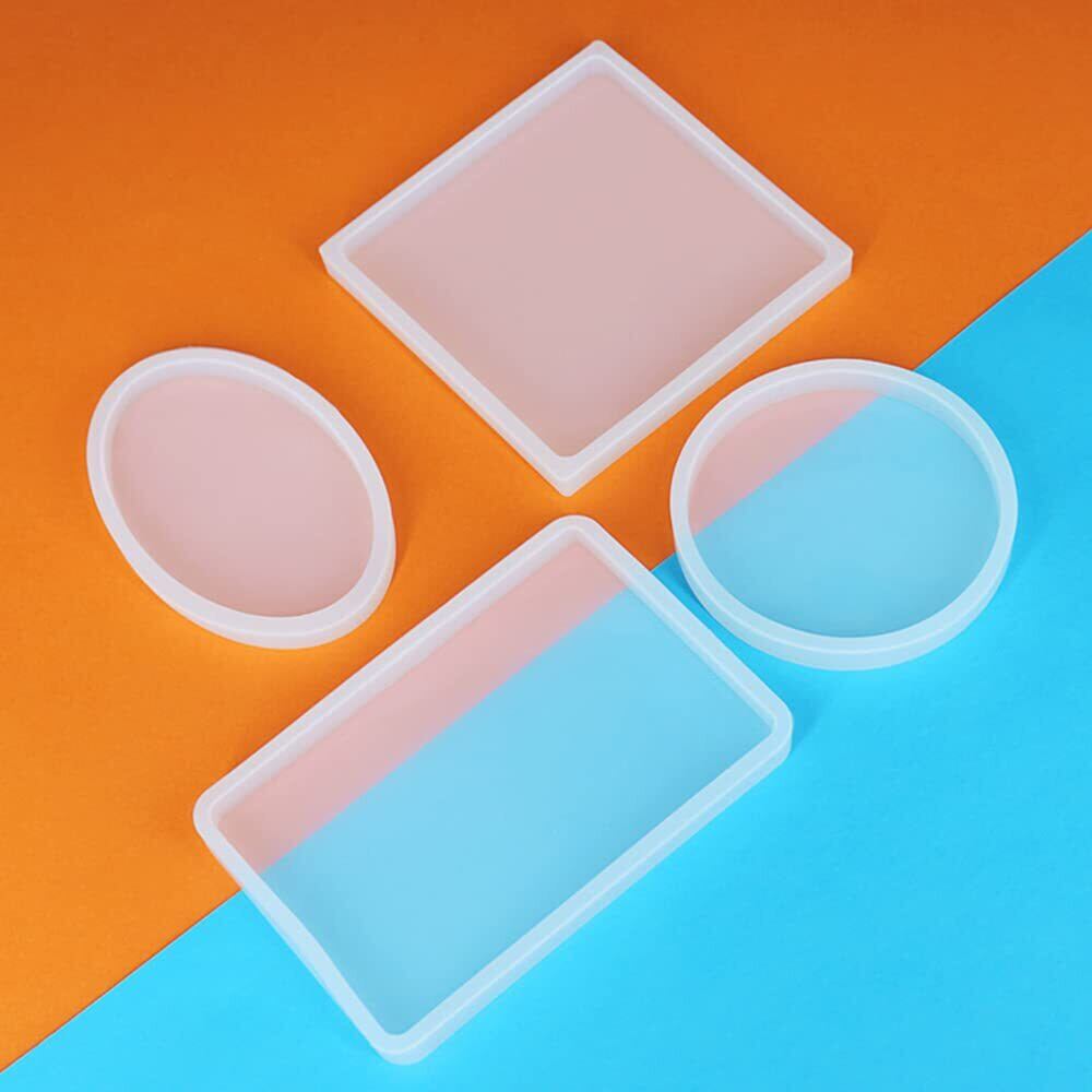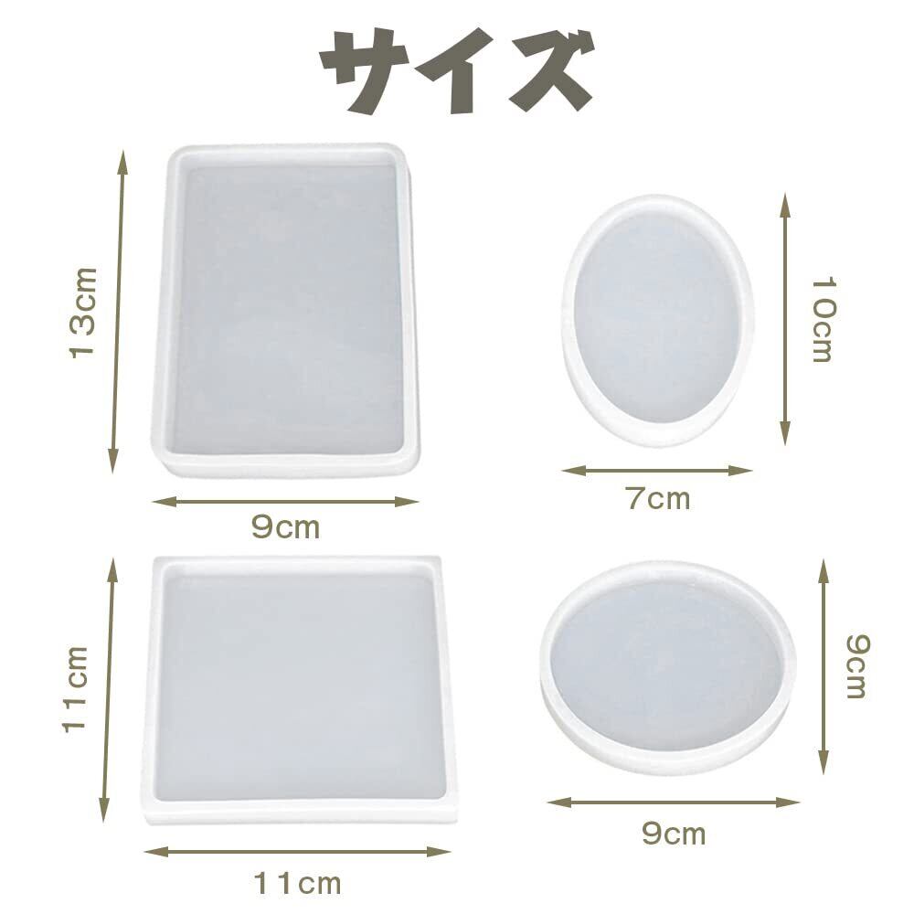 【在庫のみ】LOYELEY レジン型 シリコンモールド 正方形 長方形 丸 楕円 4個セット ネックレス アクセサリー パーツ 作成 道具 抜き型 エポキシ樹脂 UVレジン 樹脂粘土