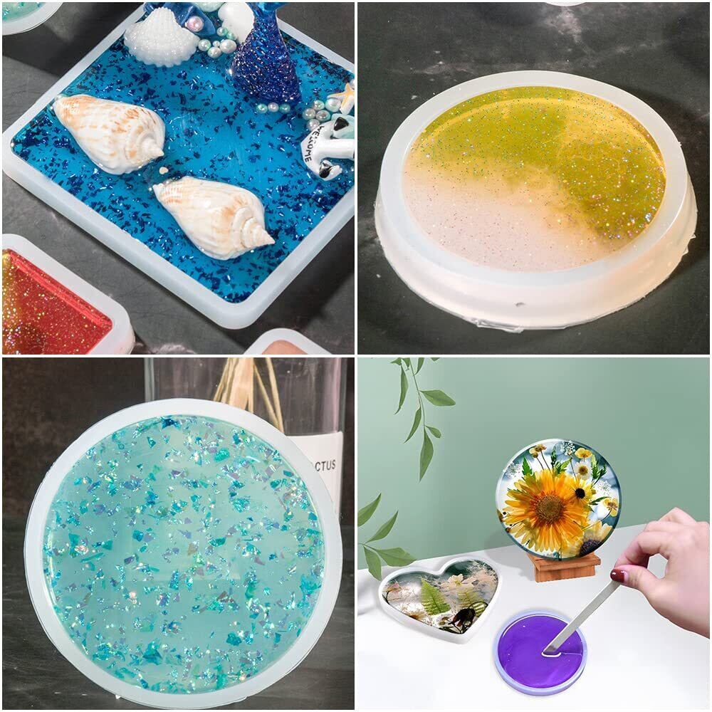 LOYELEY レジン型 シリコンモールド 正方形 長方形 丸 楕円 4個セット ネックレス アクセサリー パーツ 作成 道具 抜き型 エポキシ樹脂 UVレジン 樹脂粘土