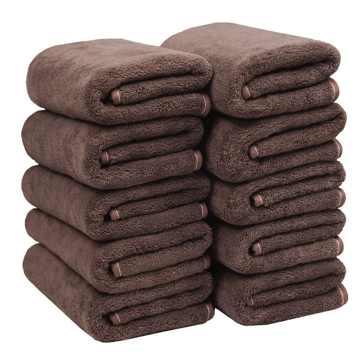 【在庫処分】フェイスタオル マイクロファイバー 10枚セット 約35X75cm 柔らかい ふわふわ 高速 吸水 速乾 通気 人気 家庭/業務用 (ブラウン)