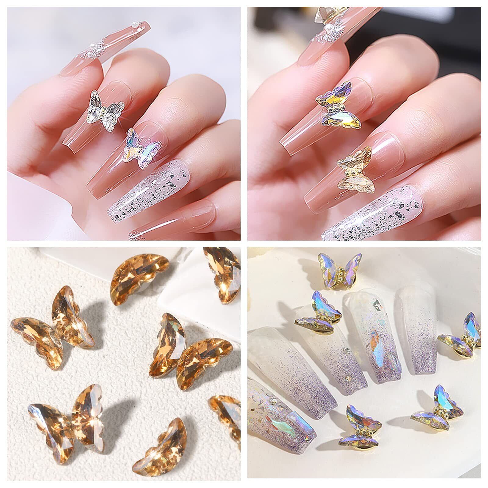 【 パッケージ】クリスタルバタフライのネイルアートアクセサリー25個セット、毎日のネイルアートのデコレーションに必要な十分な量とさまざまなカラーがあります。 シルバー、シャンパン、ピンク、オーロラピンク、オーロラパープルの5色です。 【高品質素材】クリスタルバタフライのジュエルは、きらめくジルコニアからひとつひとつ丁寧に作られています。 クリスタルジュエルは透明感があり、指先でキラキラと輝き、ネイルに全く新しい輝きをもたらしてくれます。 煌めくカラーは、あらゆる違いを演出します。 【ファビュラス装飾】キラキラと輝くクリスタルの蝶の装飾は、ゲストのネイルに輝きを与えます。 繊細な蝶の装飾は、ゲストのネイルを陽の光でキラキラと輝かせ、より一層堂々と洗練された印象にします。 【使いやすい】バタフライネイルジュエリーは、ナチュラルネイルや人工爪に適しています。 爪の表面をきれいにし、ネイルグルーを塗り、3Dバタフライを爪に貼り付け、さらにネイルグルーを塗って爪に密着させるだけです。 【多用途】様々な手工芸品、DIYの装飾、シリコーン製品、クリスマスの装飾、ギフトの包装、ネイル、携帯電話のケースなどに使用されます。 友人、ガールフレンド、妻、妹、母などへの美しい贈り物です。