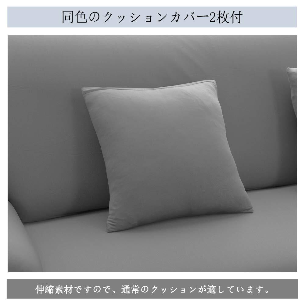 【サイズ】:2人掛け:145-185cm。パッケージにあるもの:ソファーカバー、クッションカバー2枚付、スポンジ棒。底部の周りにはストレッチ性のゴムが内蔵し、またリボンでカバーをしかっりに固定できます。スポンジ棒が出ないように、底の紐をきつく縛りすぎないようにしてください。