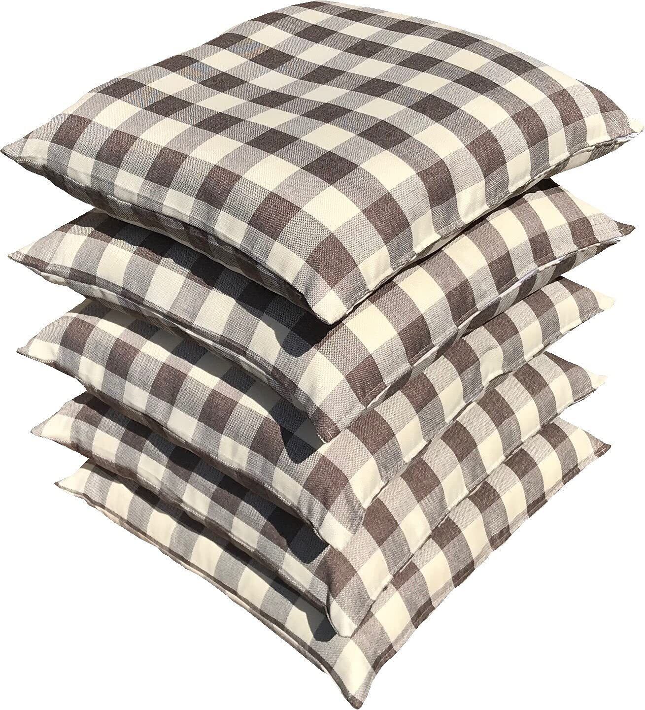 【在庫処分】座布団カバー 55 59 5枚セット しっかり厚地 Cチェック ブラウン 55x59