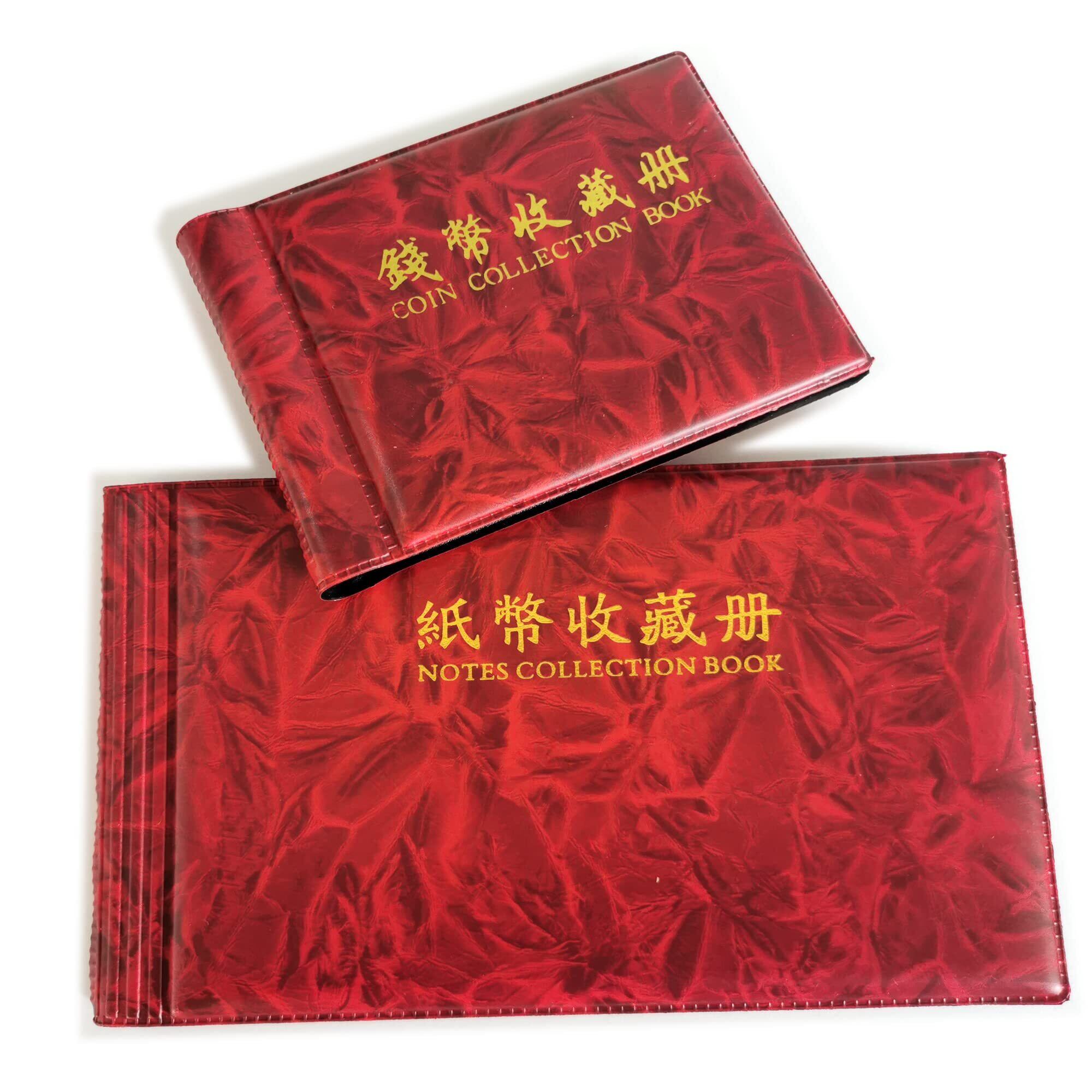 【特価処分】Augsion 2冊セット 紙幣 コイン 収集 保存用 コレクション アルバム 優品質 30ページ 60ホルダー お金ポケット 通貨 収納ホルダー ケース (レッド)