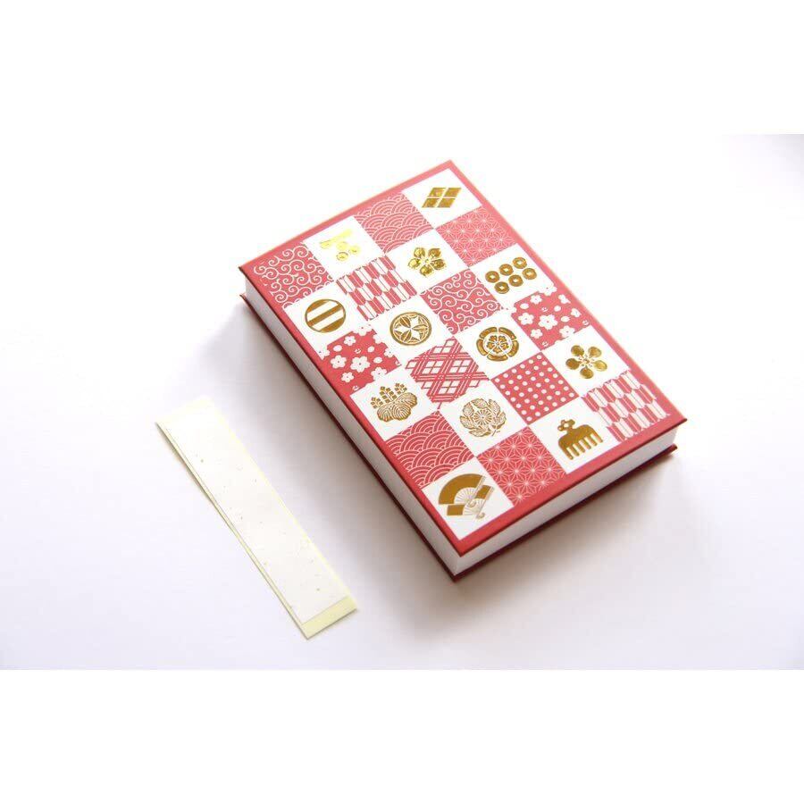 ポケット付き御朱印帳 小紋×家紋 180×120mm 40ポケット 1冊 (赤)