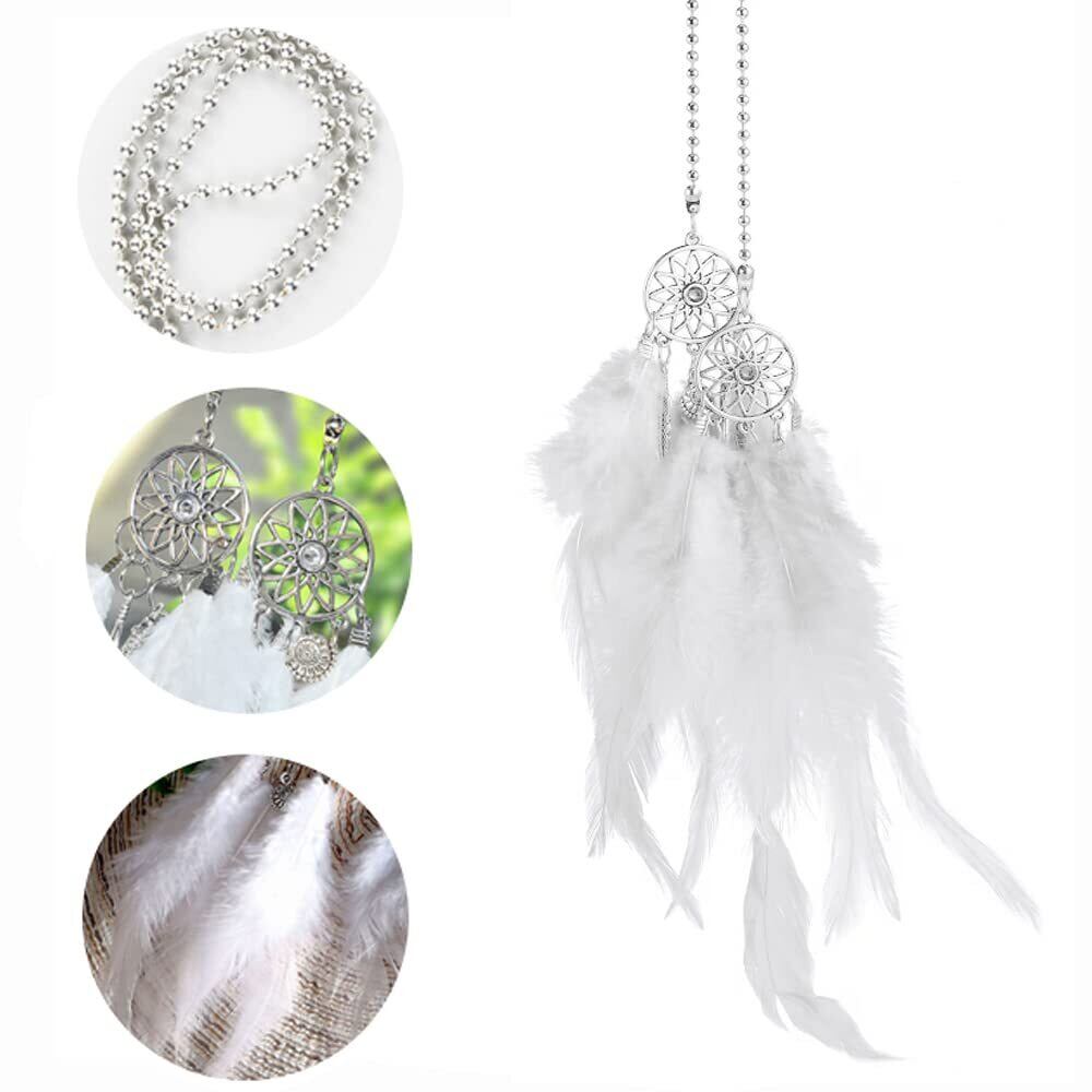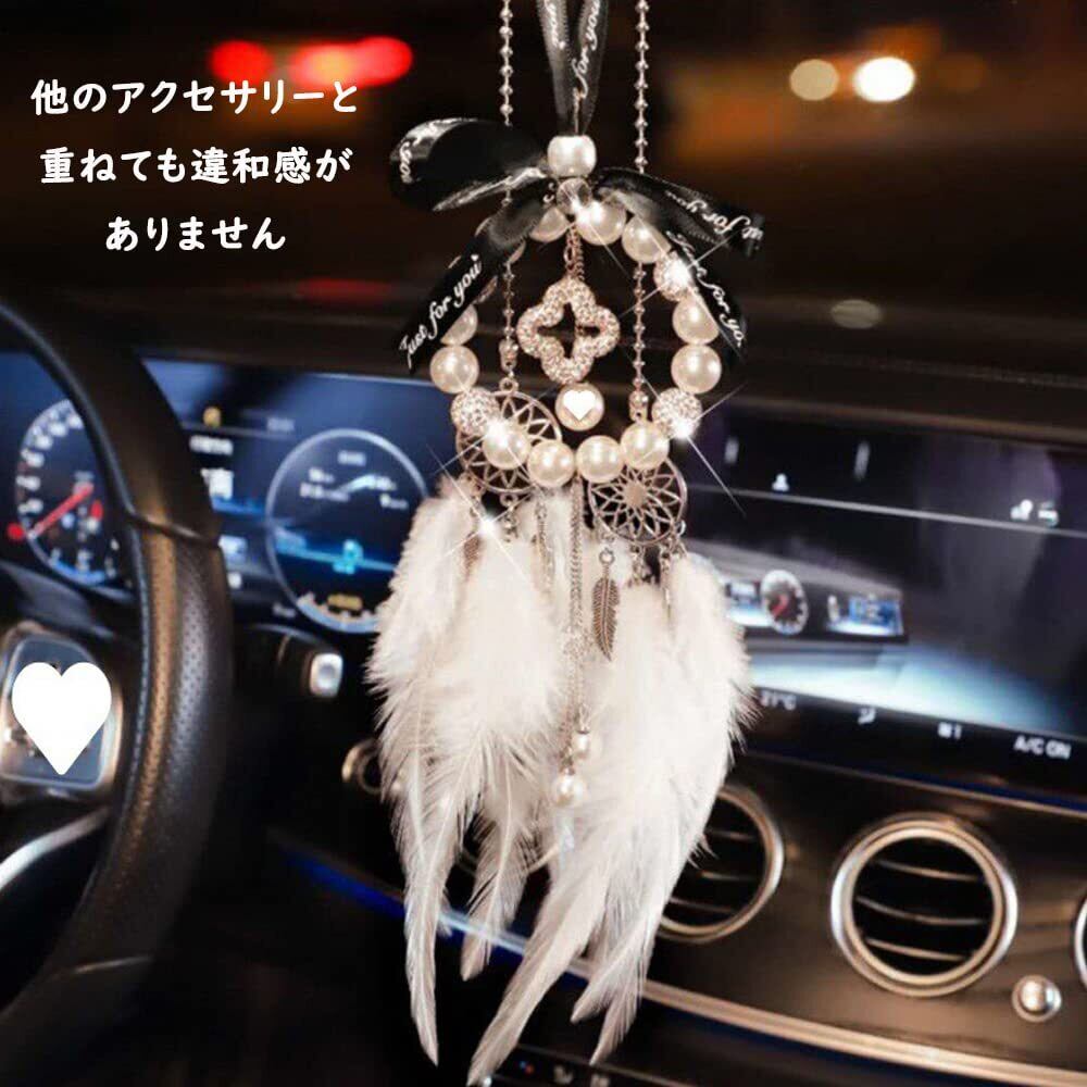 サムコス ドリームキャッチャー カーアクセサリー ペンダント 捕夢網 車飾り インテリア 窓飾り おしゃれ 精緻 乙女心 かわいい プレゼント 人気 ラッキー 祝福 幸せ守る 小型で静か運転を邪魔しない (ワイト)