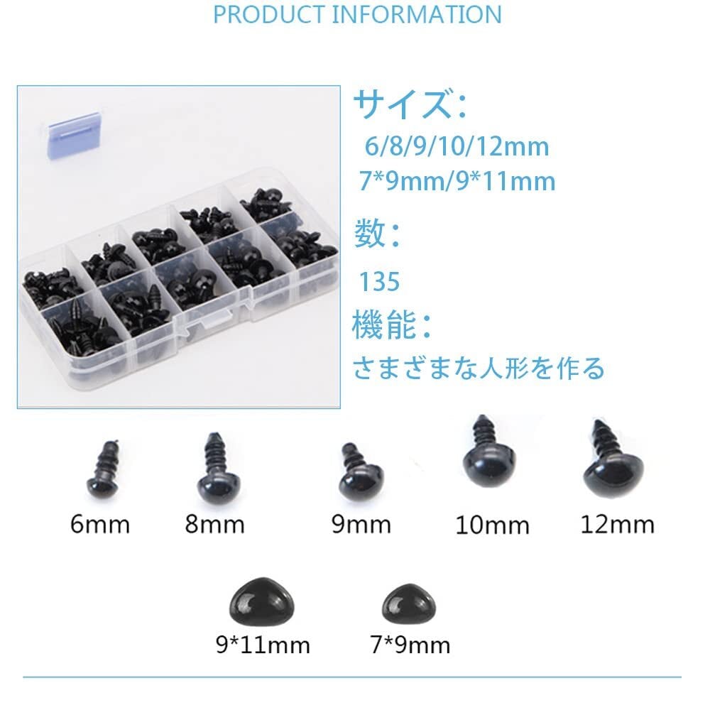 【在庫のみ】YIXINLYMY さし目 ドールアイ ぬいぐるみ 目玉 パーツ さし鼻 動物鼻 プラスチックノーズ DIY 縫製 クラフト 手芸パーツ 手作り (さし目 6mm/8mm/9mm/10mm/12mm/9*11mm/7*9mm 135個入り)