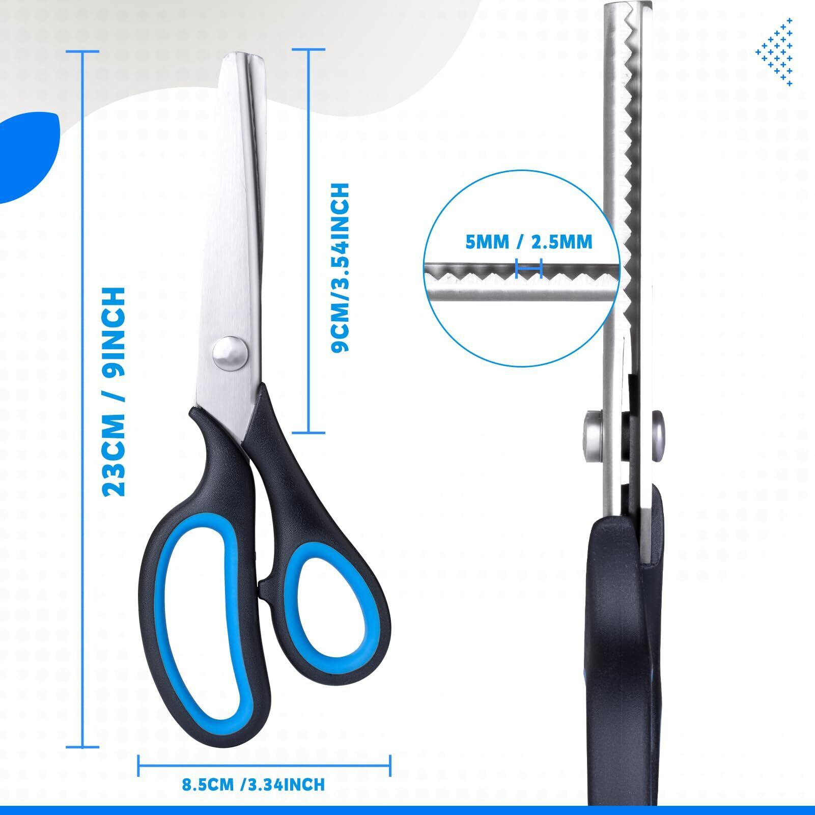 【規格】山型5mm,材質:刃/2cr13ステンレスチール。22.3CMインチのピンキングハサミは、ステンレススチール、カミソリのような鋭い刃が特徴で、簡単かつ完璧な装飾的なカッティングを実現します。 高耐久の刃は、すべてのカットがシャープで鮮明です。