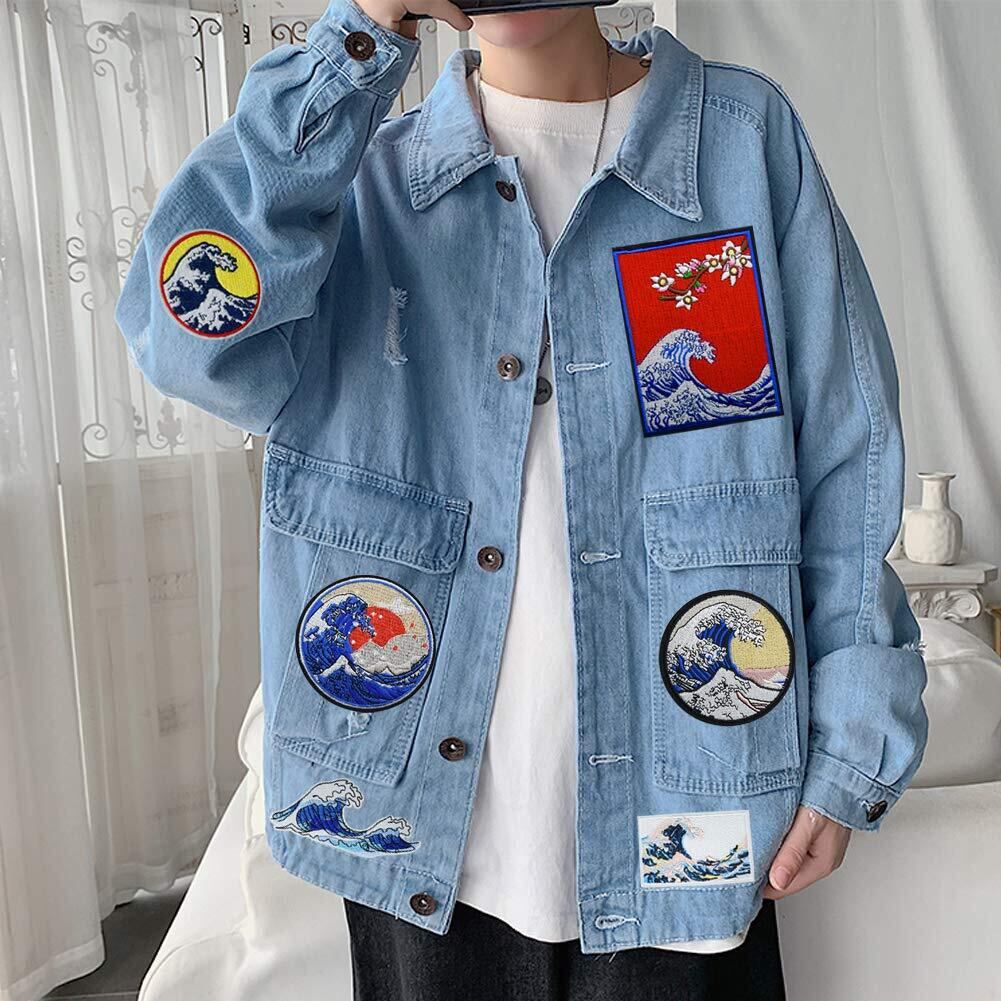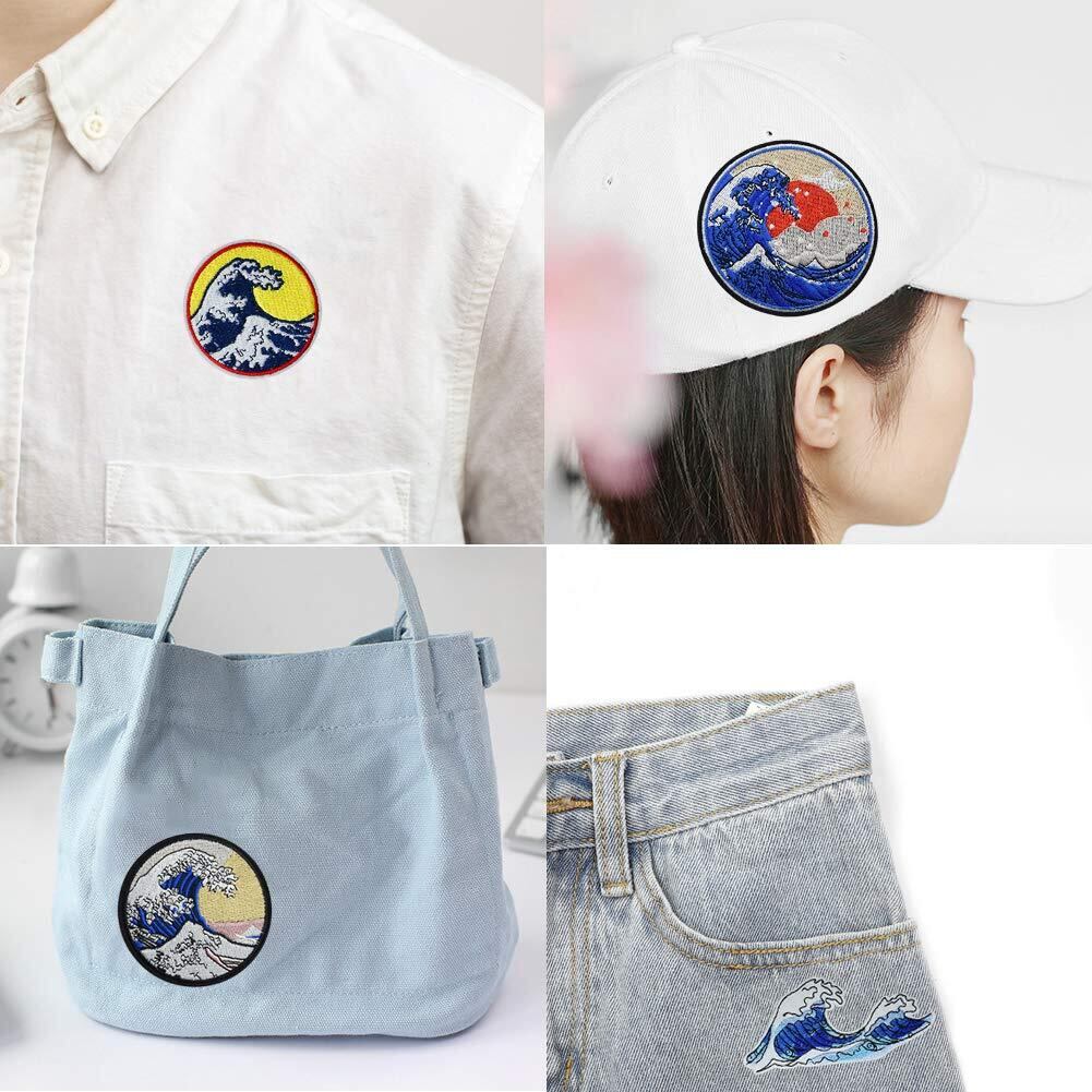 【努力特価】ワッペン アイロン刺繍 MUNCVY アップリケ DIY服 かながわおきなみうら 波 和風 浮世絵 おしゃれ 可愛い装飾 保育園 幼稚園 パッチ 補修 大きめサイズ 6枚セット 衣類 浴衣 手袋 手帳 飾り