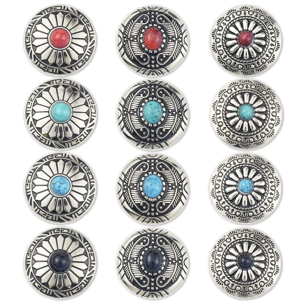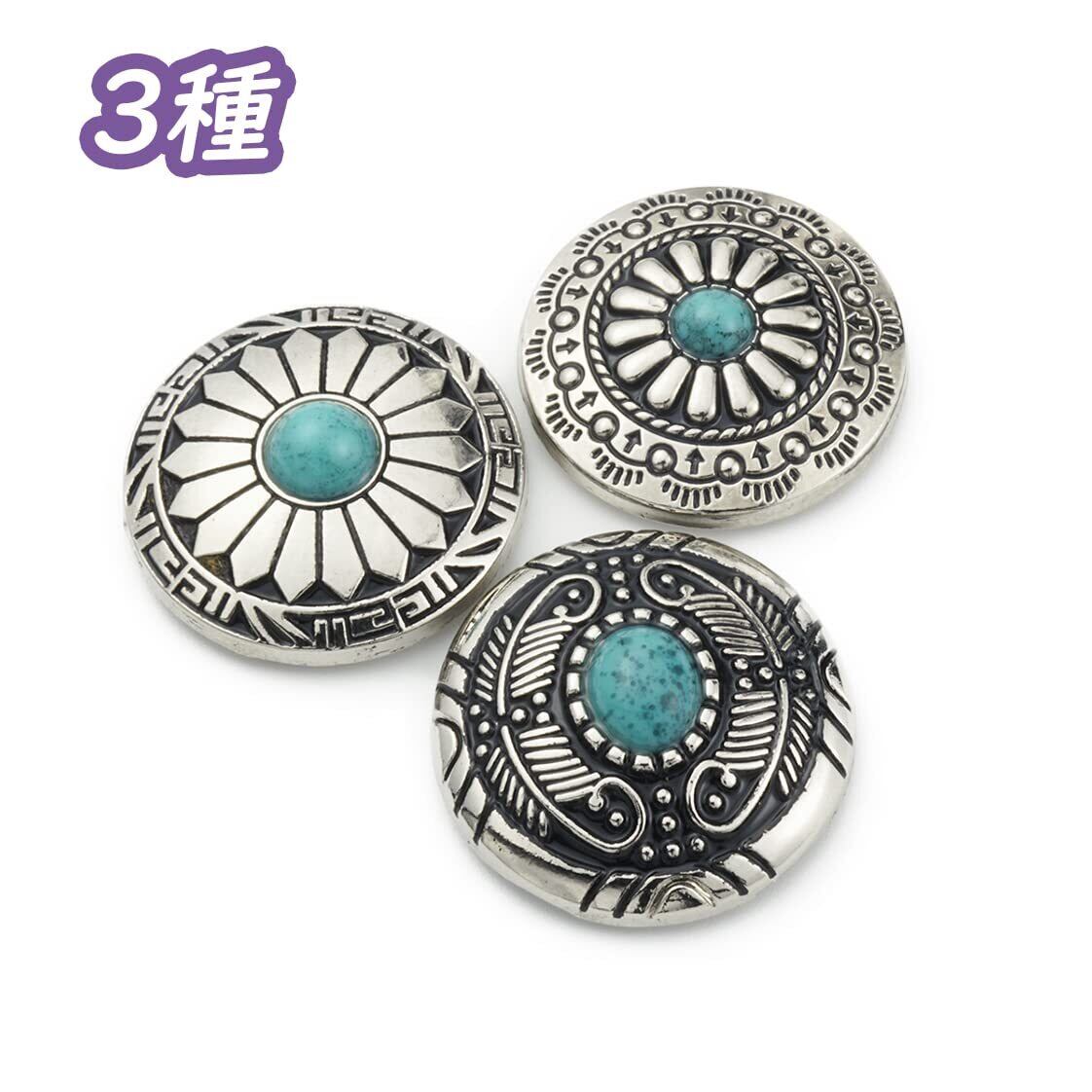 【在庫のみ】コンチョ ボタン 4色12個セット ターコイズ ネジ式 30mm レザークラフト 財布 手芸