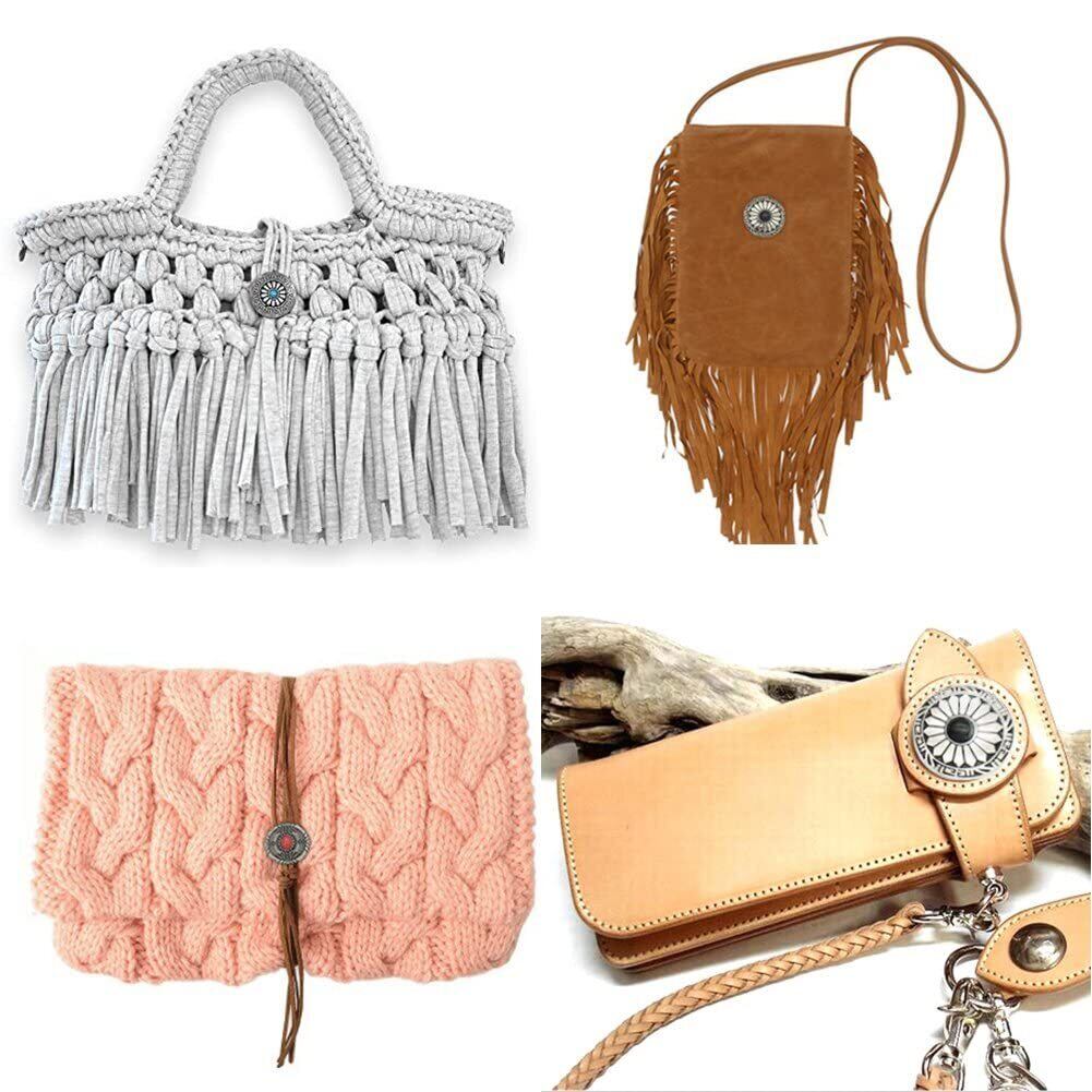 ネイティブ系の財布・バック・ベルト・ポシェット・キーホルダー・スマートフォンケースなどのハンドメイド製品に幅広くお使い頂けます。レザー・布・TシャツヤーンのDIY作品に最適な装飾ボタンです。