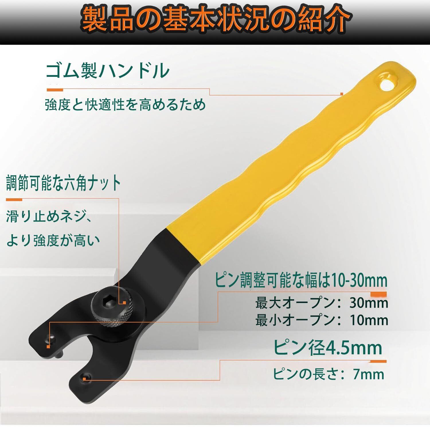 【数量限り】グラインダー スパナ 10-30mm 調整可能 アジャストピンレンチ ロックナット ディスクグラインダー用