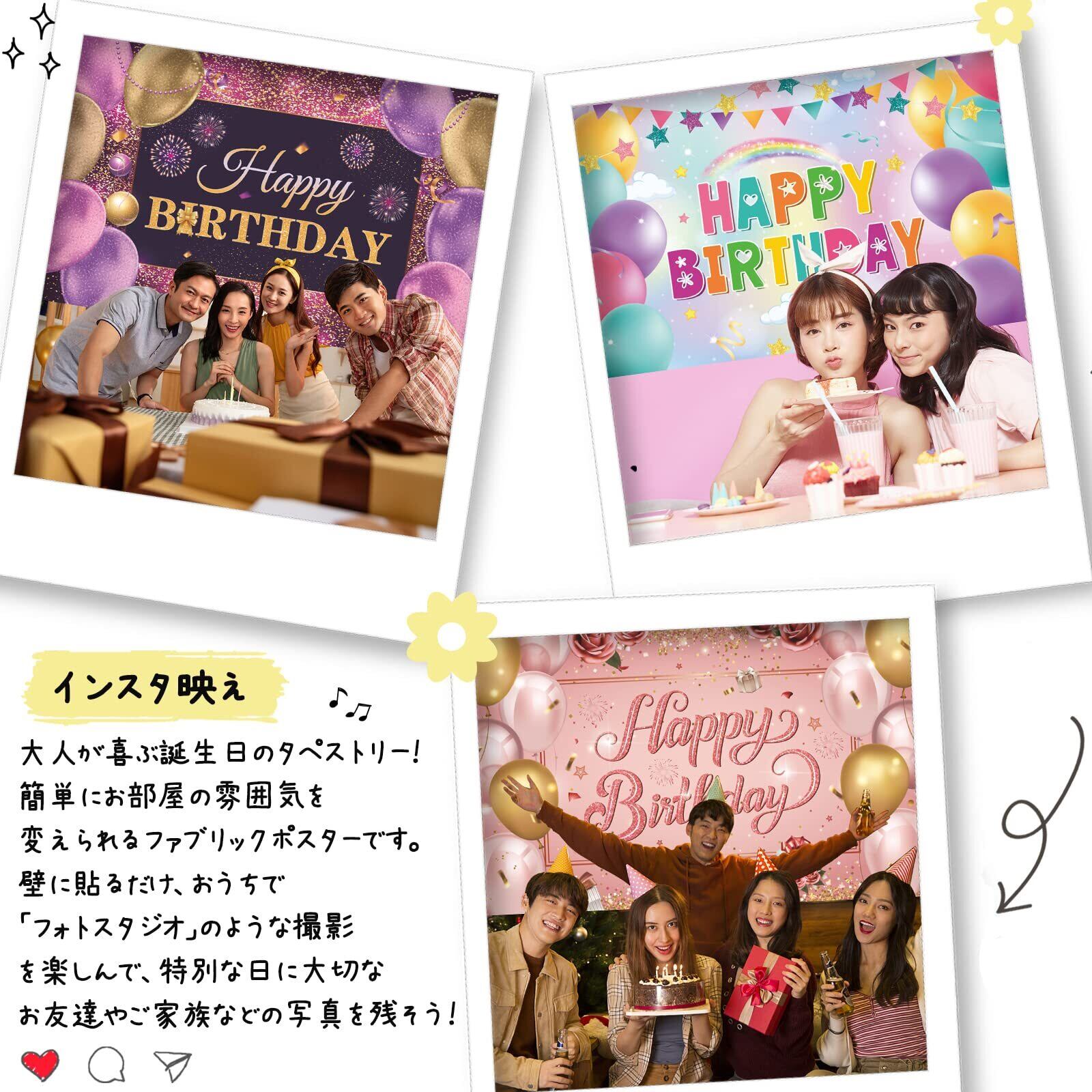 【数量限り】Paready バースデー タペストリー 誕生日 飾り付け 壁掛け フォトポスター 写真背景 壁飾り 大判 横 Happy Birthday おしゃれ 装飾 デコレーション パーティー お祝い 女の子 男の子 ローズゴルード