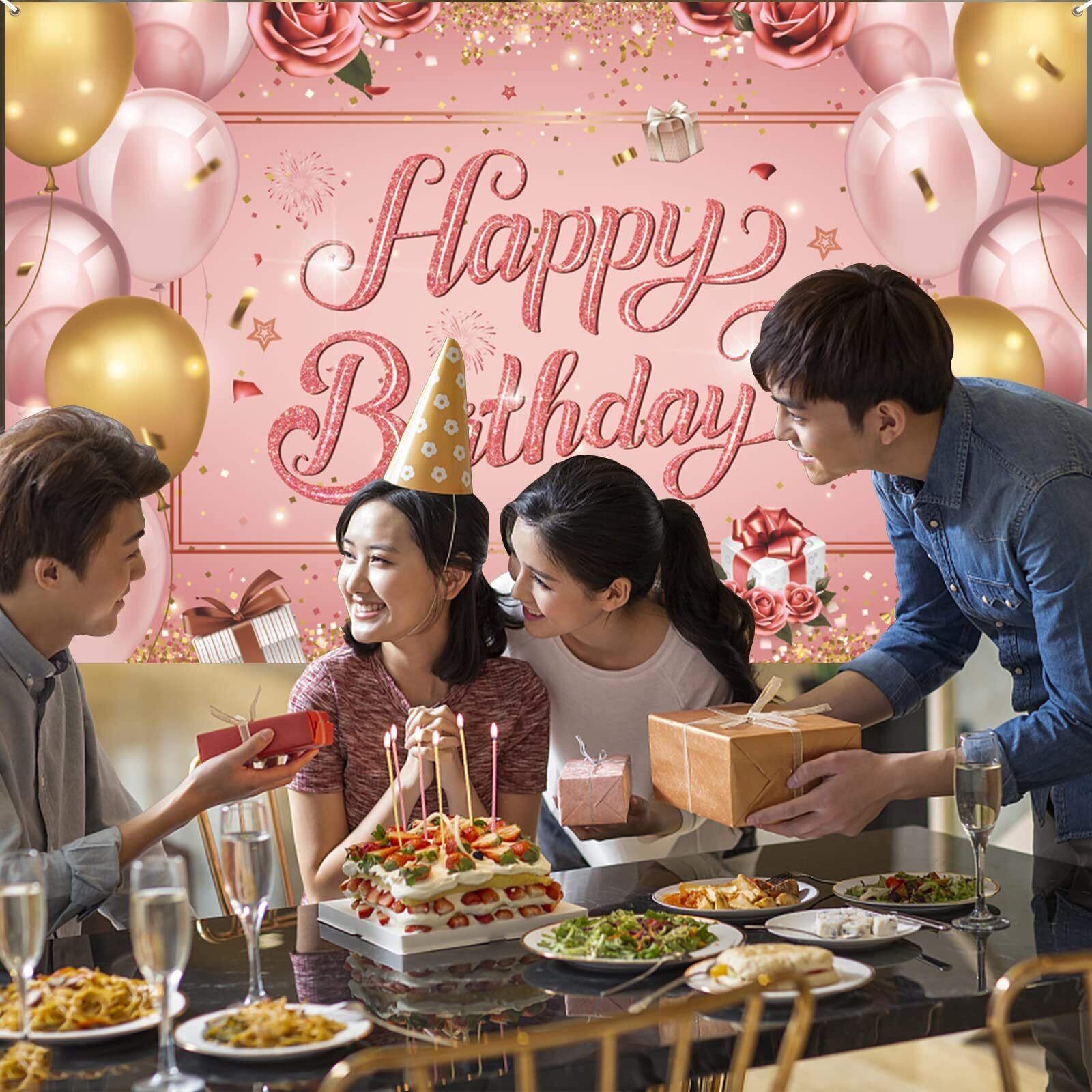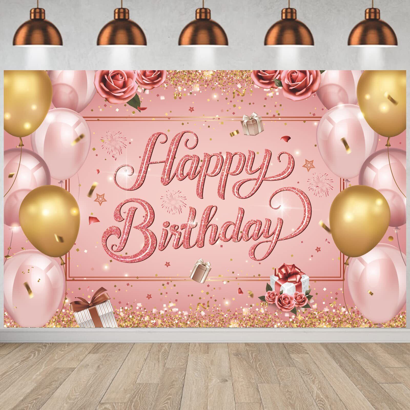 Paready バースデー タペストリー 誕生日 飾り付け 壁掛け フォトポスター 写真背景 壁飾り 大判 横 Happy Birthday おしゃれ 装飾 デコレーション パーティー お祝い 女の子 男の子 ローズゴルード