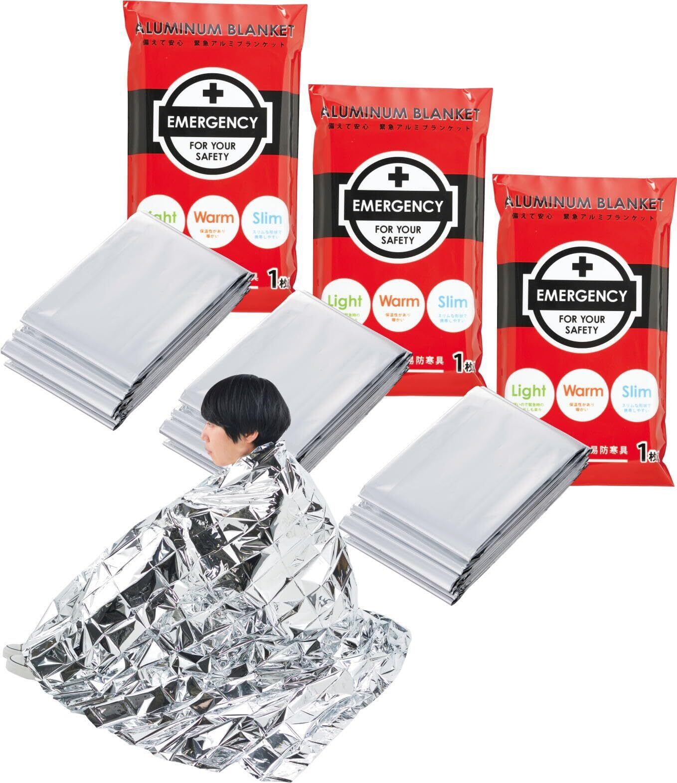 3枚セット アルミシート アルミブランケット 防災 災害対策 寒さ対策 避難所 防災用品 避難グッズ アウトドア 防水 防寒 シルバー 140×210cm 収納時はコンパクトサイズ 薄型