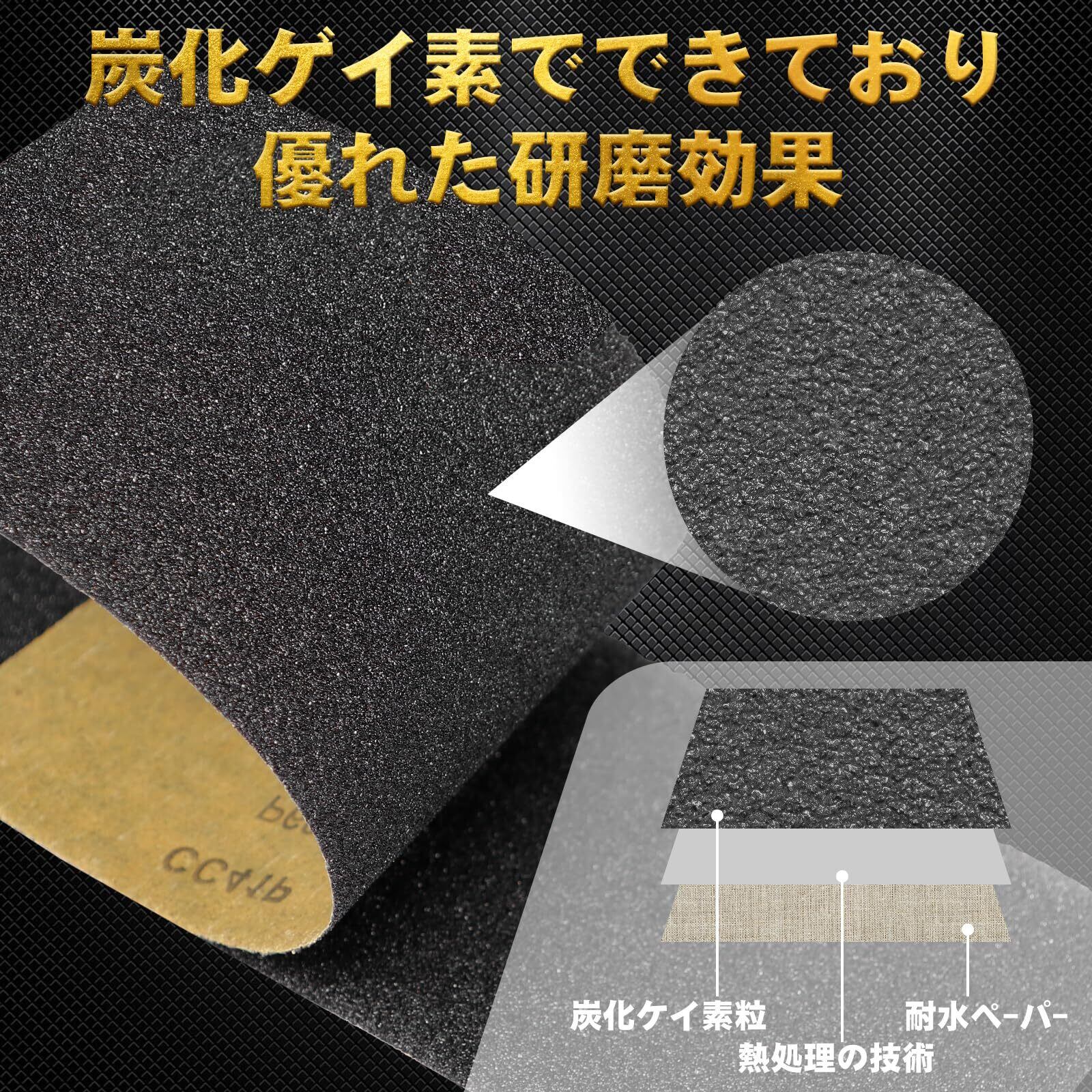 このサンドペーパーは高品質の炭化ケイ素研磨材でできており、ウェットでもドライでも使用でき、耐久性に優れています