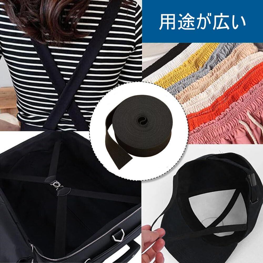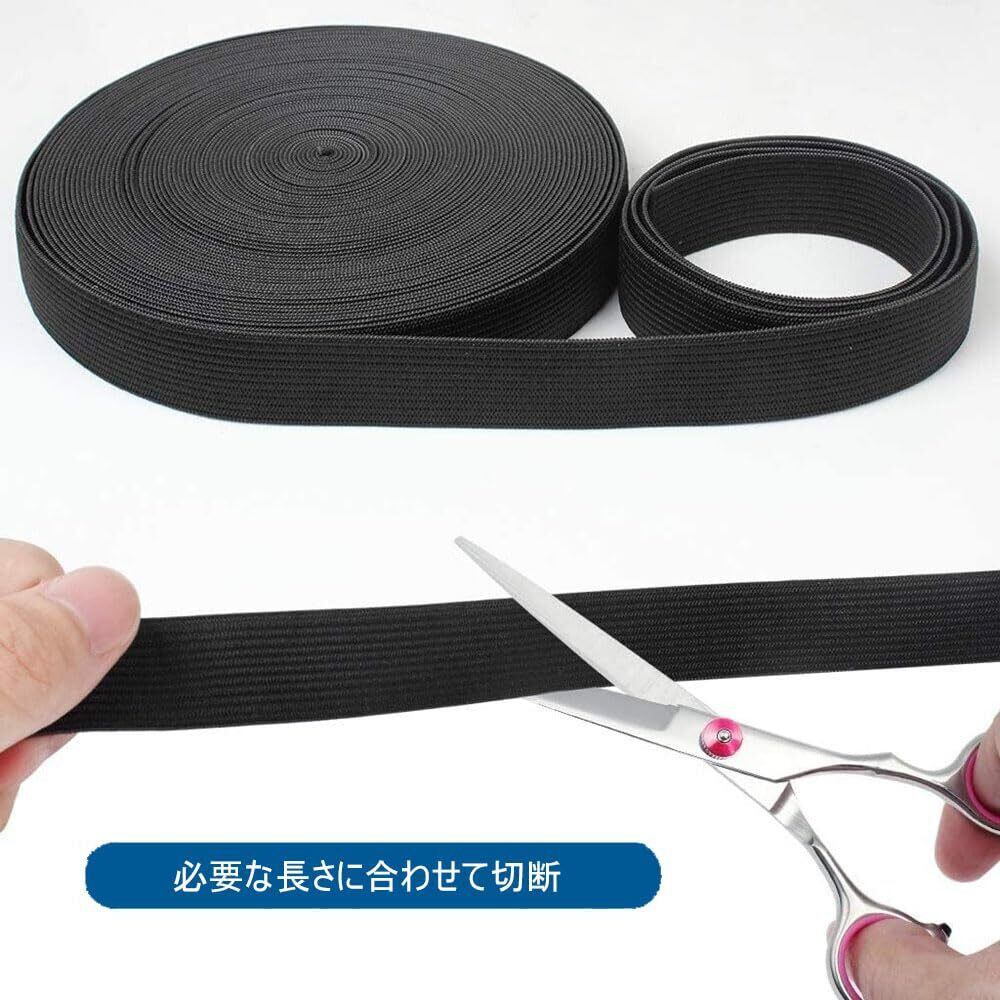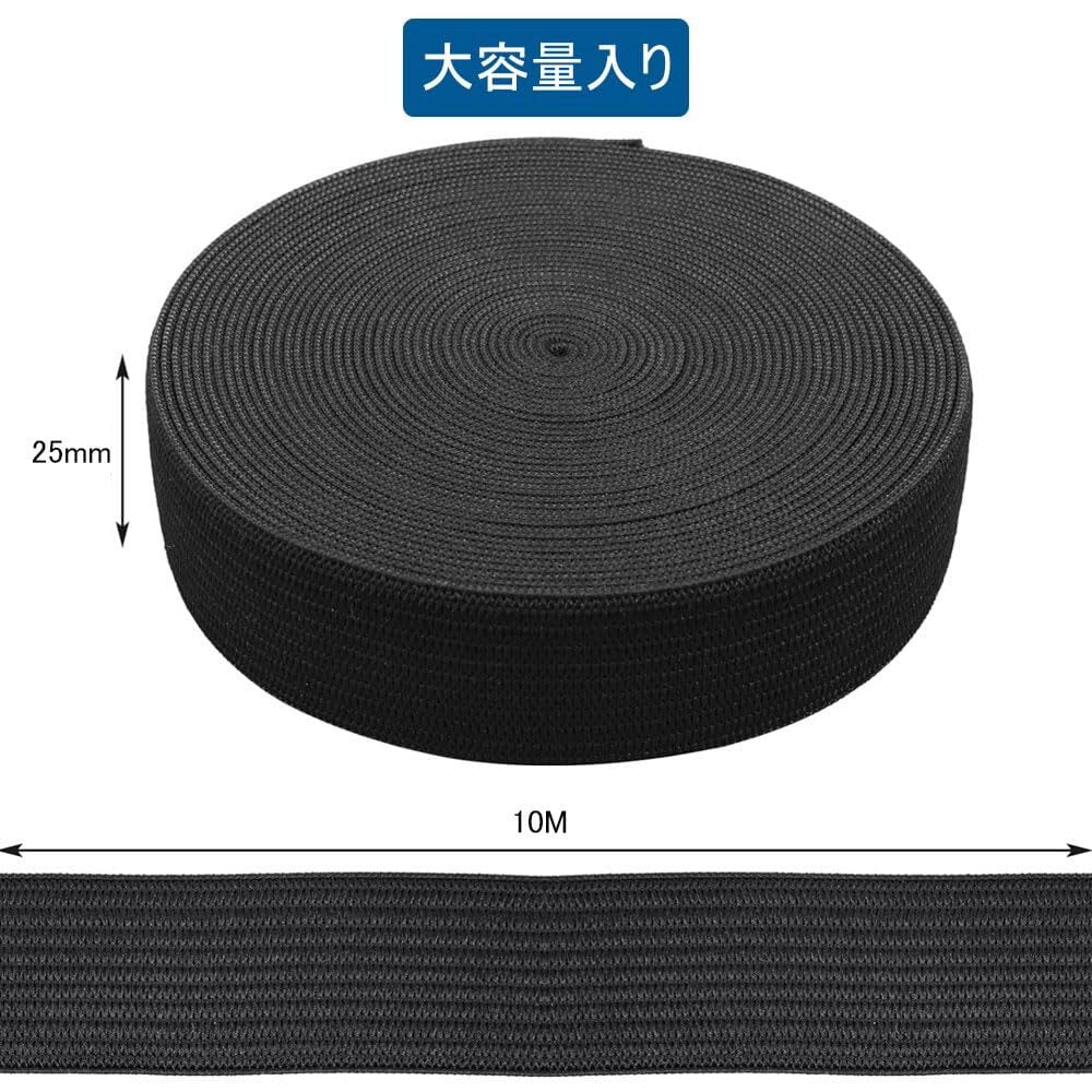 平ゴム 弾性バンド 幅25mm×10m ゴムベルト ズボン用の交換バンド ゴム紐 織ゴム 強い弾性 裁縫材料 DIY 手芸裁縫 (ブラック)
