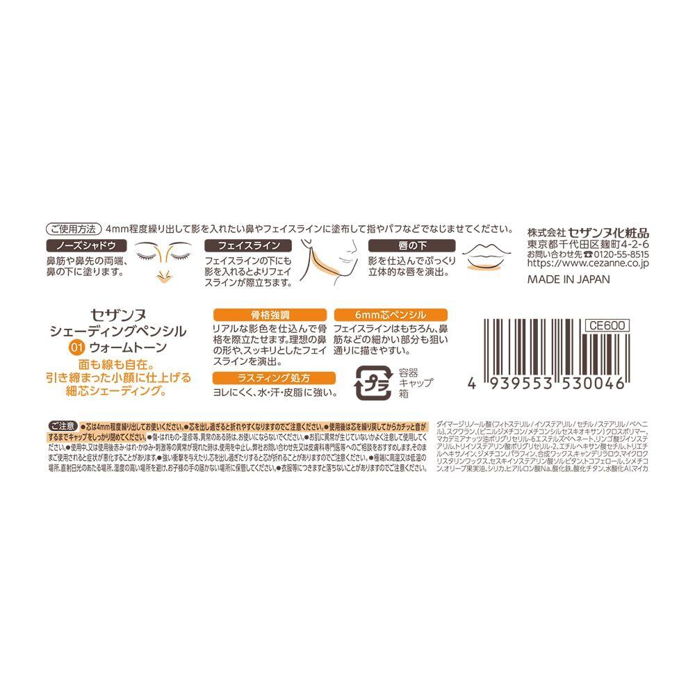 セザンヌ シェーディングペンシル 01 ウォームトーン 1.2g 面も線も自在 骨格強調シェーディングペンシル