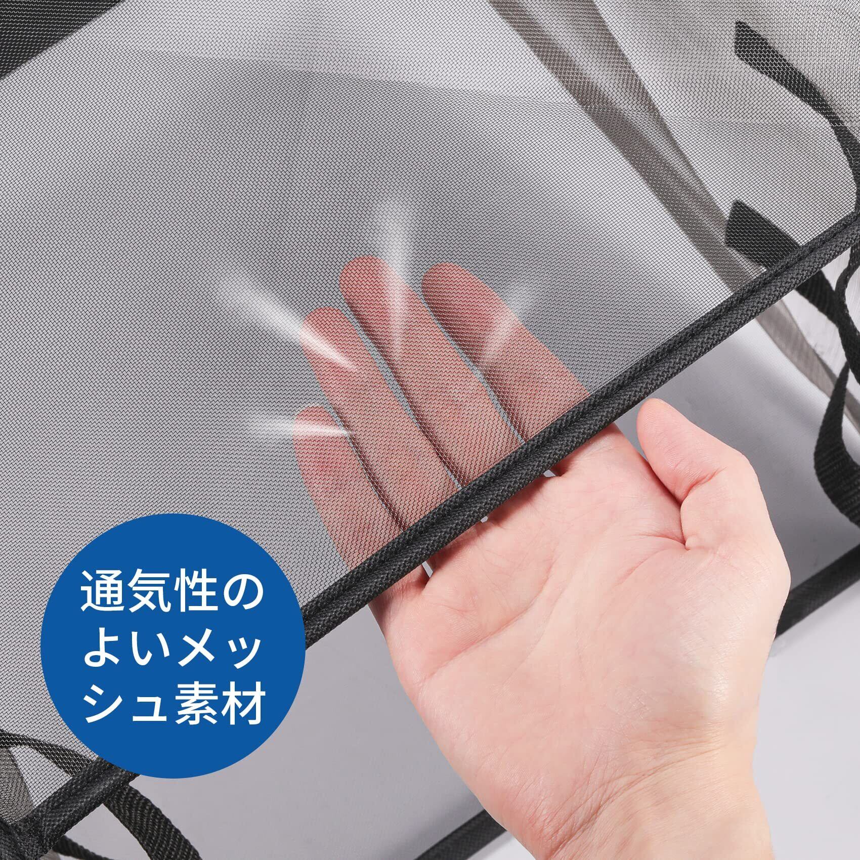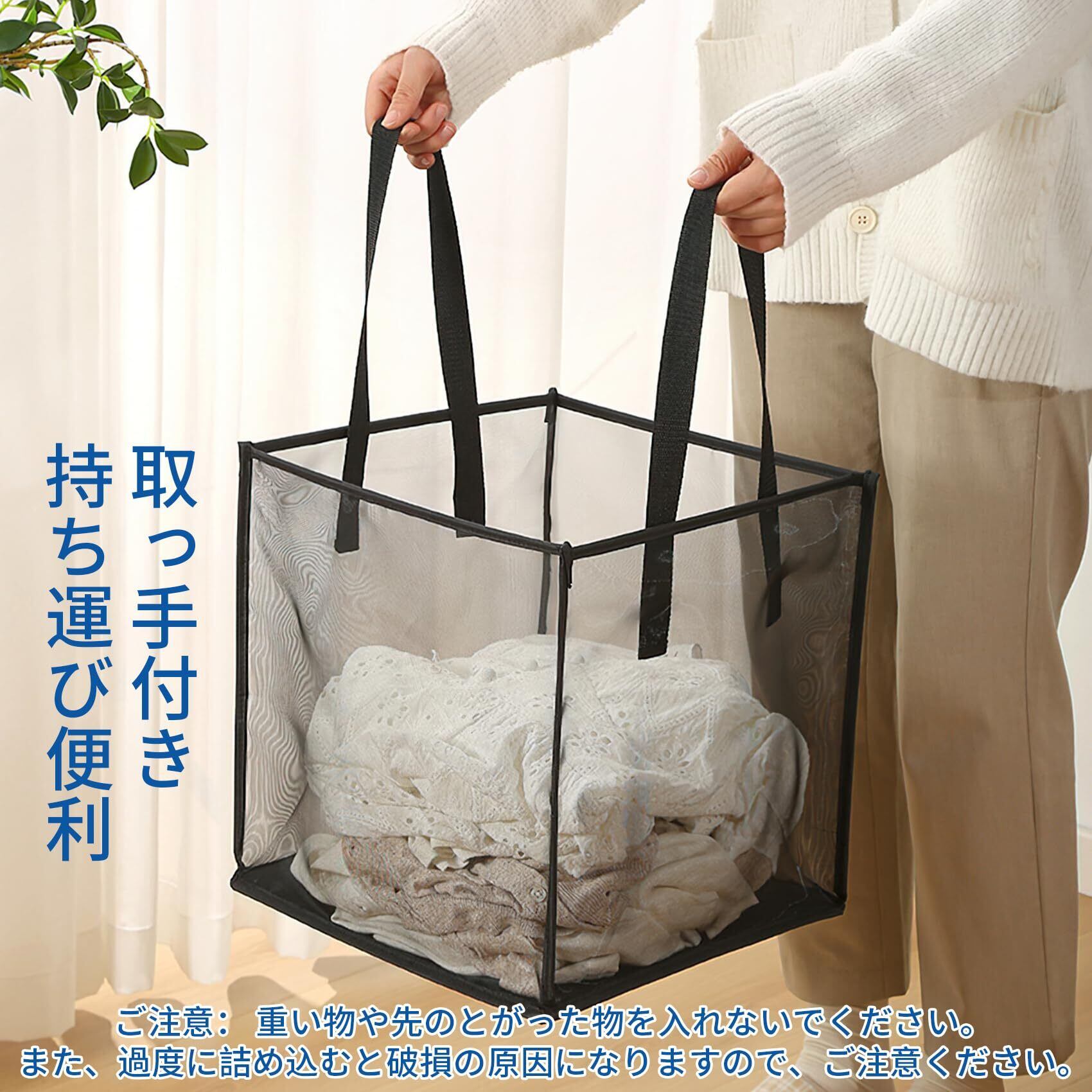 通気のメッシュ生地:折り畳めるランドリーバスケットは軽量で通気性の高いメッシュ素材を使用しており、湿気やニオイがたまりにくく、また中身が分かりやすく一目瞭然です。