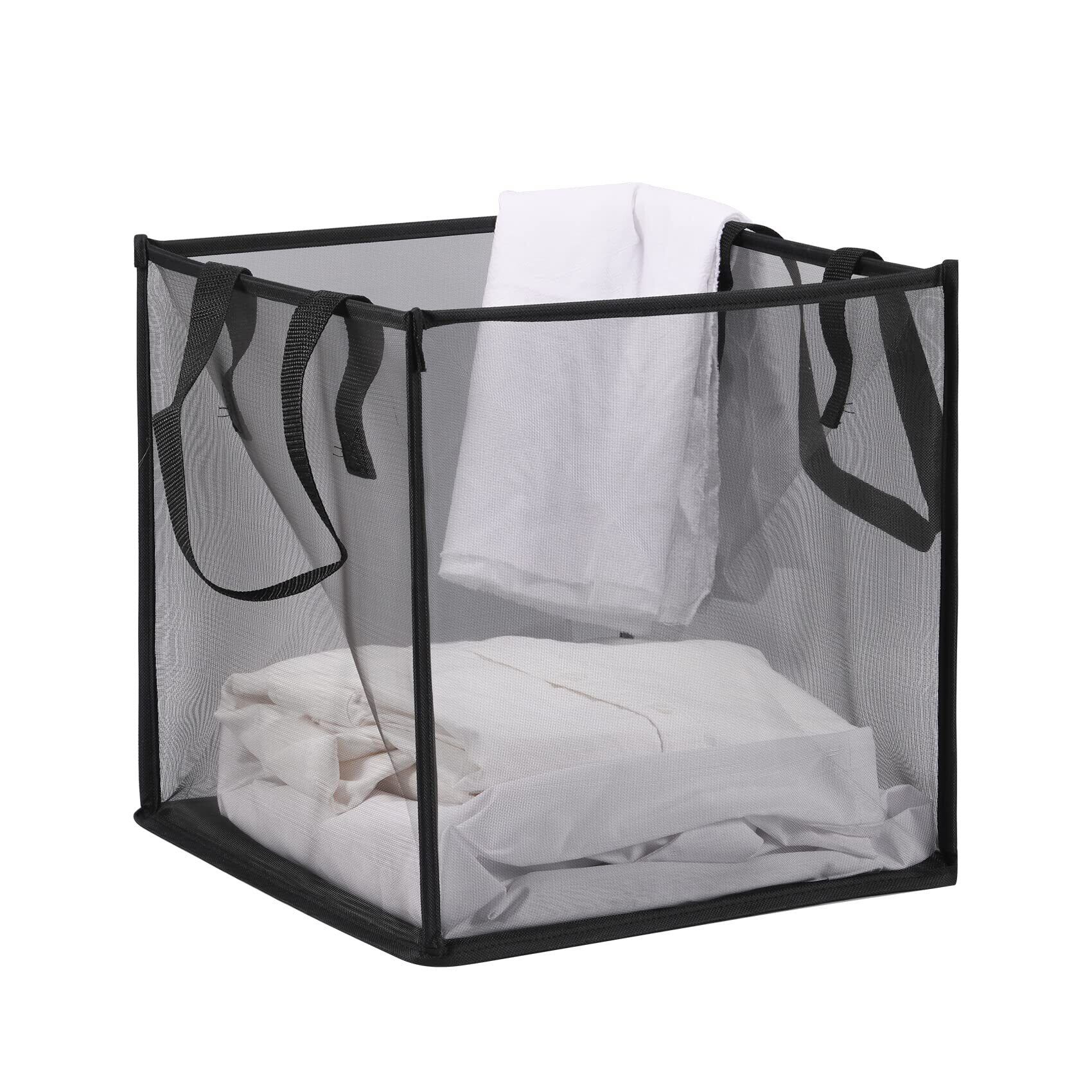 【特価処分】Annhua ランドリーバスケット 洗濯バスケット 洗濯カゴ大容量 メッシュ生地 折りたたみ可能なランドリーバッグ 家庭用洗濯物入れかご 省スペース ランドリー折りたたみ 通気性 取っ手付き 持ち運び便利 1段 ブラック