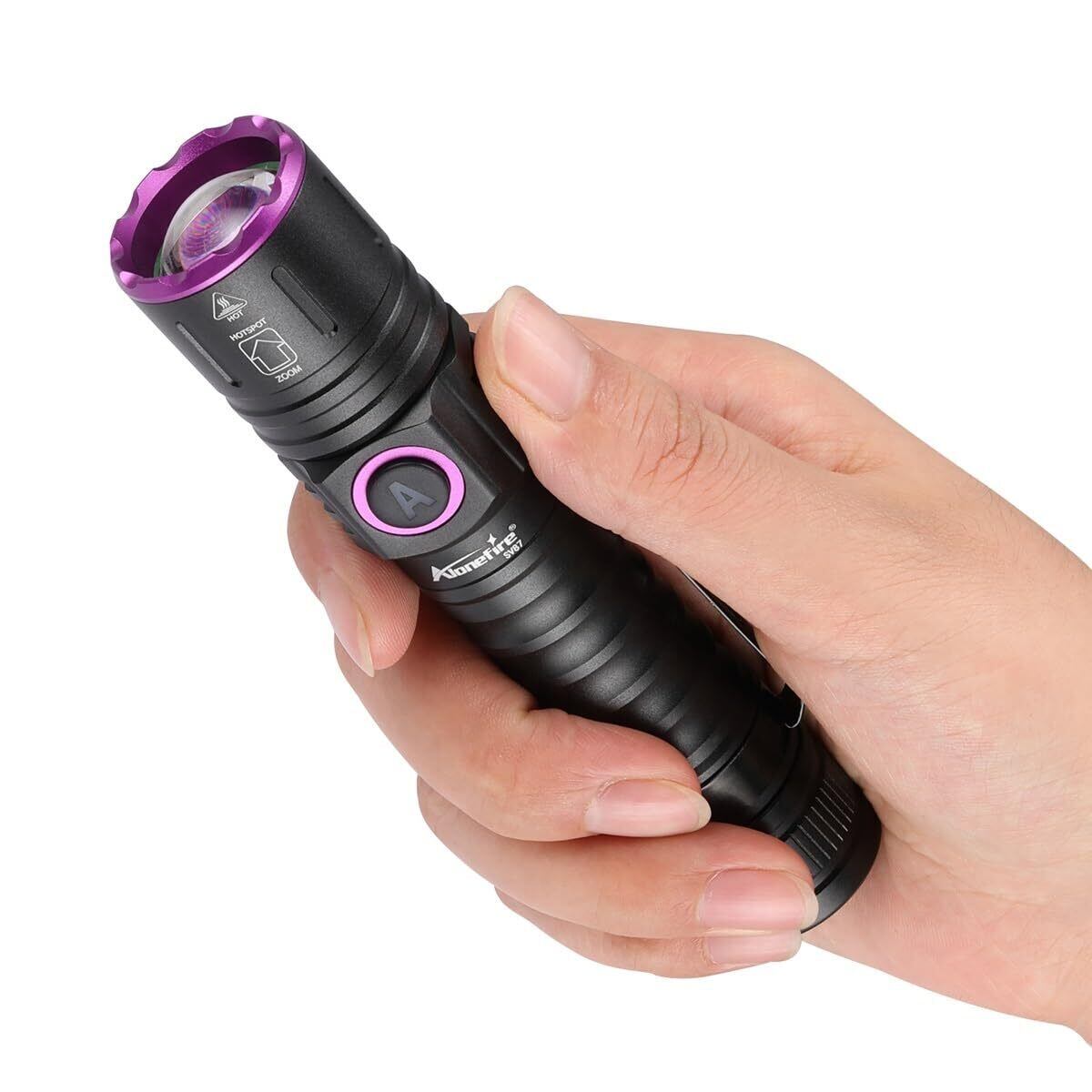 Alonefire SV87 5W 紫外線 ズーム ブラックライト 強力 UV LED ライト 波長365nm C型USB充電式 アニサキスライト ウッド灯検査 ペット尿検出器 スコーピオン 鑑定 真贋 レジン用 硬化、猫真菌、釣り、鉱物 用 リチウム電池 付き