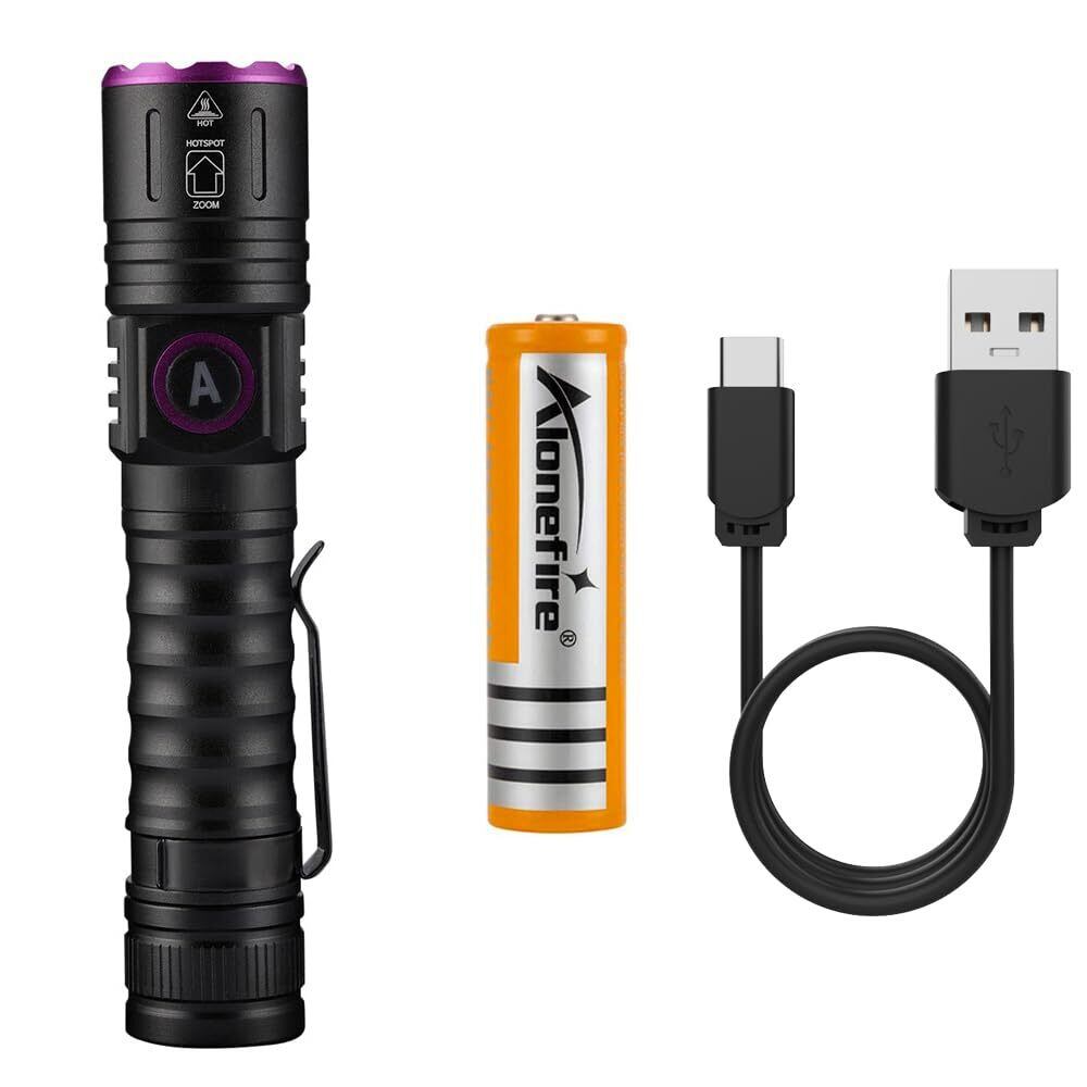 【在庫処分】Alonefire SV87 5W 紫外線 ズーム ブラックライト 強力 UV LED ライト 波長365nm C型USB充電式 アニサキスライト ウッド灯検査 ペット尿検出器 スコーピオン 鑑定 真贋 レジン用 硬化、猫真菌、釣り、鉱物 用 リチウム電池 付き