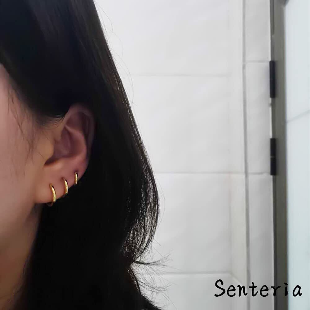 【数量限り】Senteria フープピアス リング メンズ レディース 両耳用 サージカルステンレス イヤリング セット 金属アレルギー対応 シンプル 人気 5ペア(サイズ10mm-18mm、幅2mm、 ゴールド、シルバーブラック)