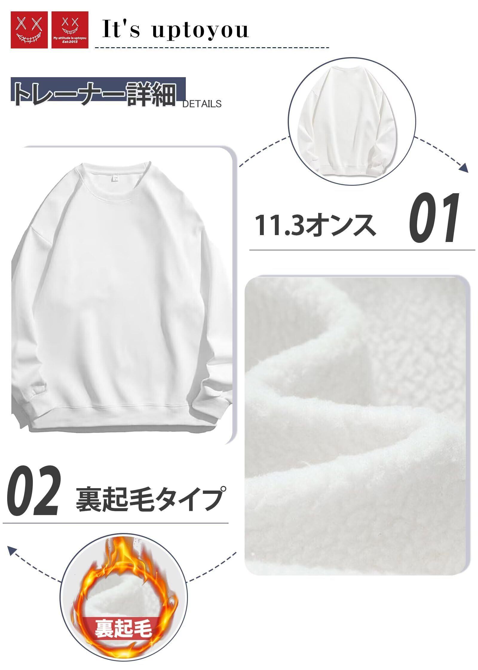 [uptoyou] トレーナー メンズ スウェット 裏起毛 レディース 11.3オンス 長袖 春服 大きいサイズ 無地 ゆったり 男女兼用 トップス プルオーバー 丸襟 アウター ルームウェア 春秋冬