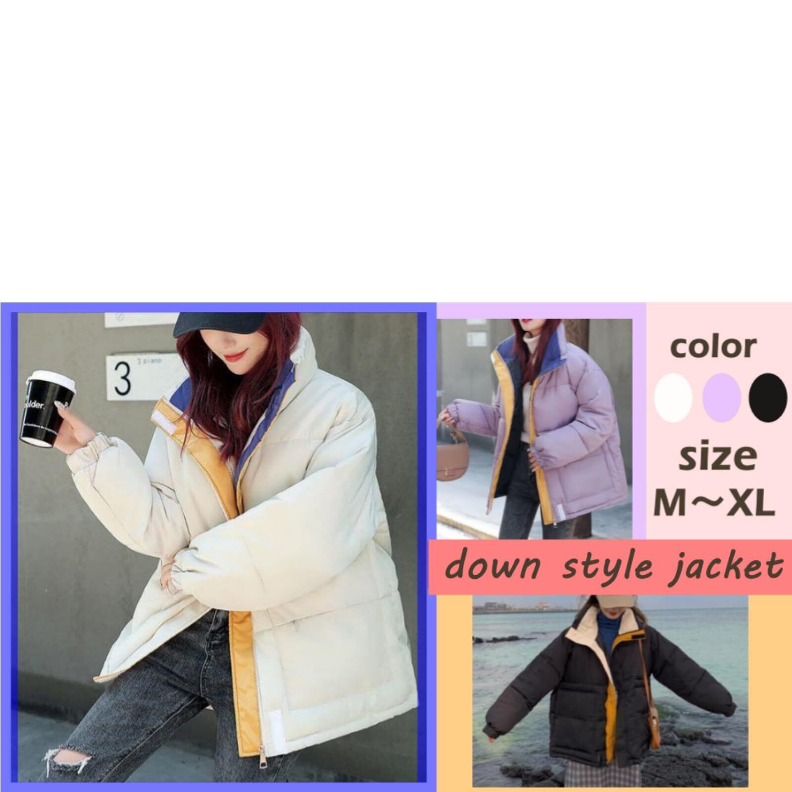 【数量限り】[one's one] ワンズワン ジャケット オーバーサイズ ダウン 風 防寒 防風 暖かい カジュアル オフホワイト パープル ブラック レディース