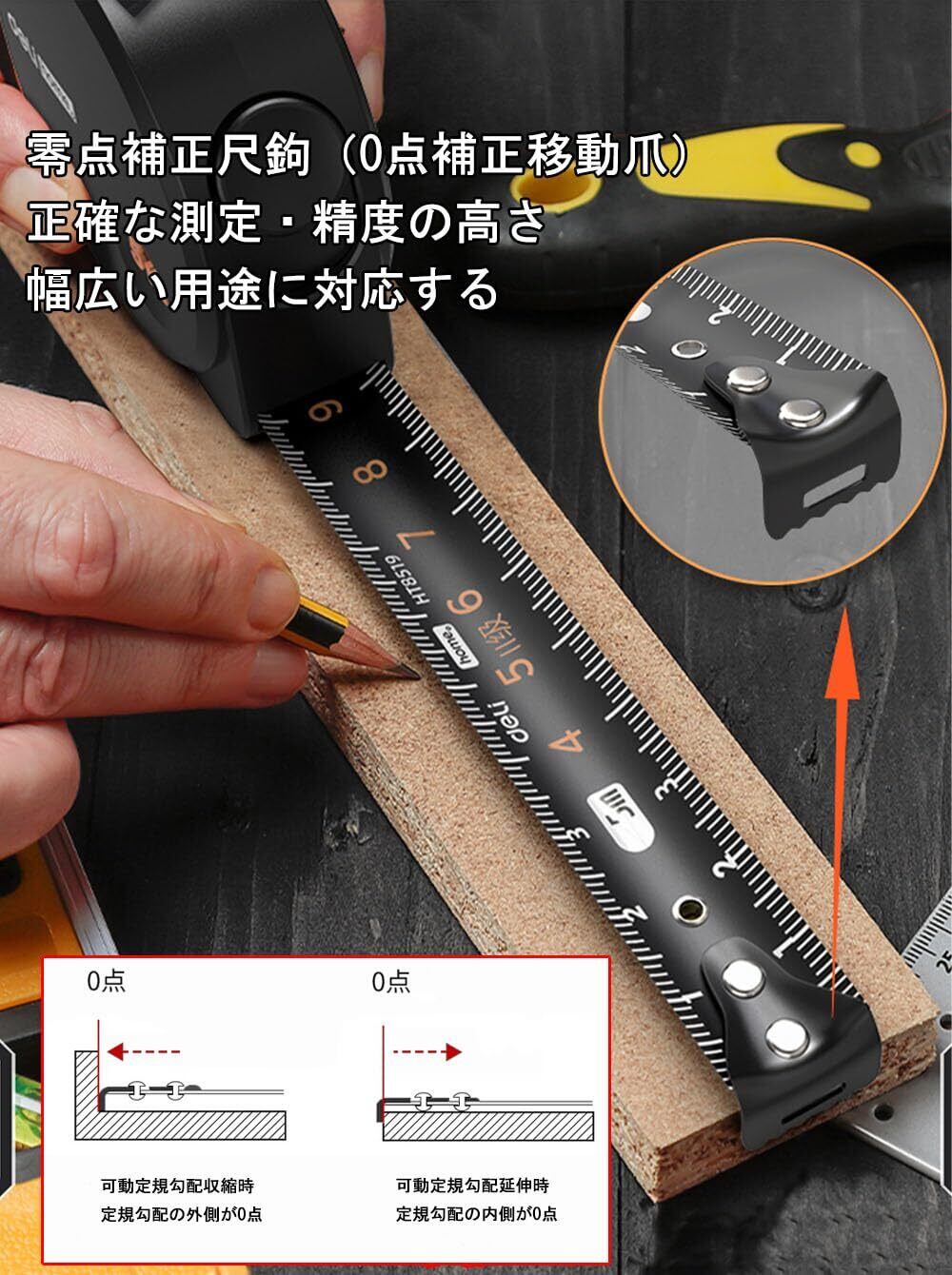 ● 炭素鋼製でかなりの強度をもつメジャー、は伸ばしても自立してくれました、水や錆に強いです。 テープは柔軟で耐久性があり、簡単に壊れることはありません。 テープのエッジは手を切らないように不動態化されています。
