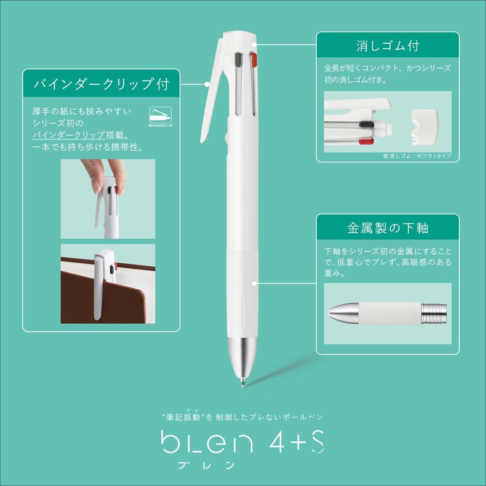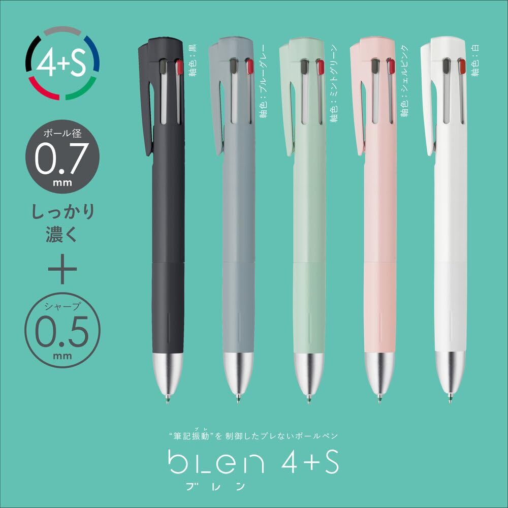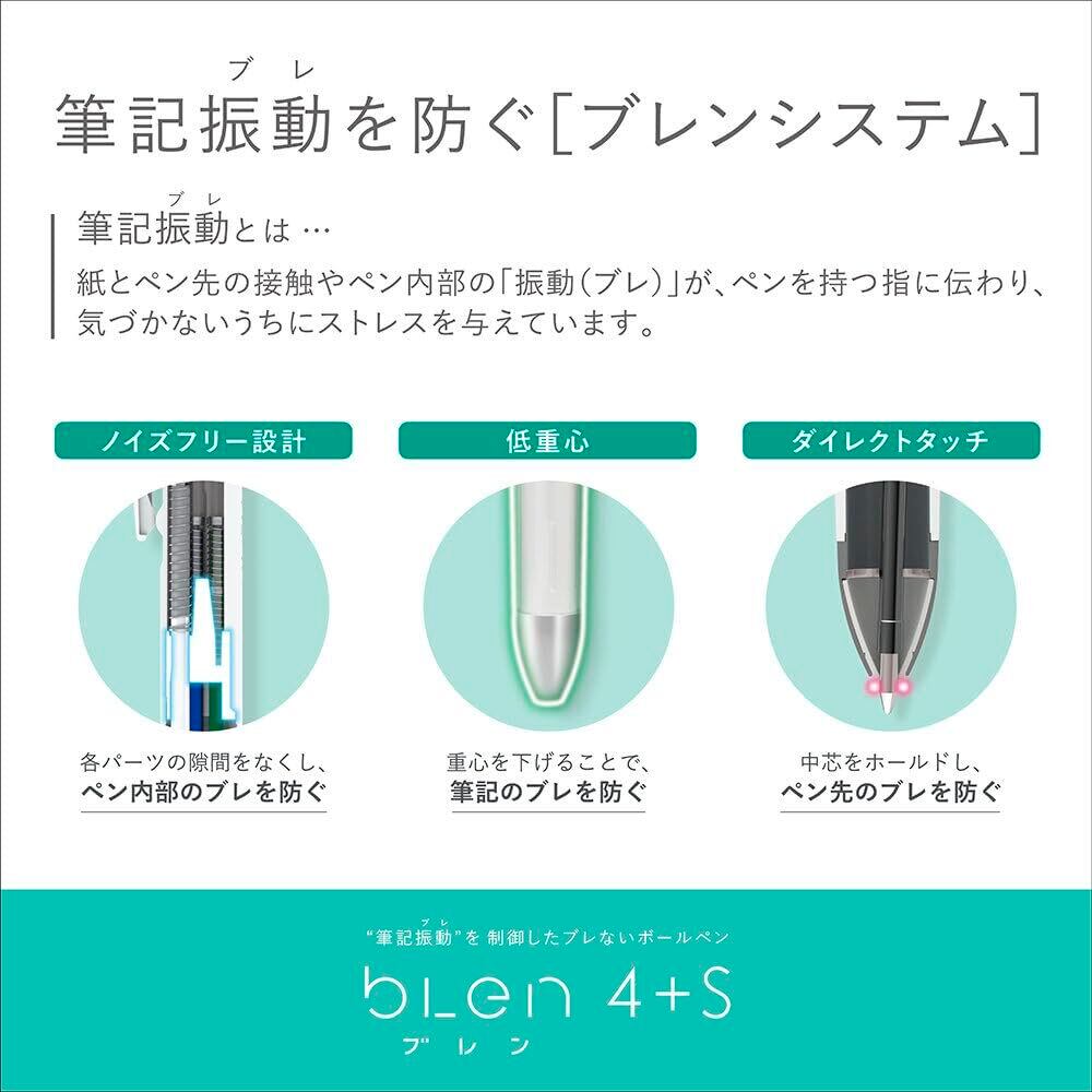 【ブレン特長】①低重心(重心を下げることで筆記のブレを防ぐ)②ダイレクトタッチ(中芯をホールドし、ペン先のブレを防ぐ)③ノイズフリー設計(各パーツの隙間をなくし、ペン内部のブレを防ぐ)