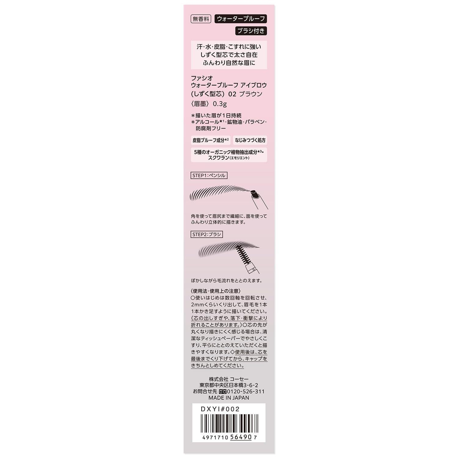 【在庫のみ】FASIO(ファシオ) ウォータープルーフ アイブロウ (しずく型芯) 02 ブラウン 0.3g