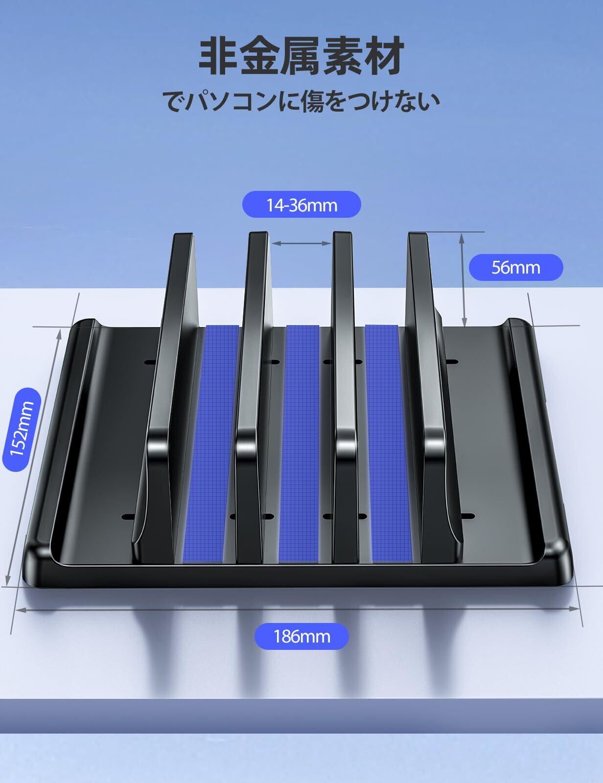 【用途の広い3スロット】私たちの設計チームは、このラップトップスタンドをより機能的に使用するために3スロットにアップグレードします。 5つの電子機器を同時に垂直に置くことができます。 デスク用のラップトップホルダーは、ラップトップ、タブレット、携帯電話をまっすぐに固定します。